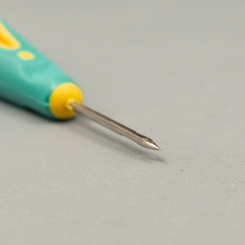 La aguja para cuero con mango plástico es una herramienta indispensable para trabajos de costura en materiales gruesos como cuero, lona o cuerina. Su diseño robusto y mango ergonómico facilitan el perforado y la costura manual con mayor precisión y comodidad.
