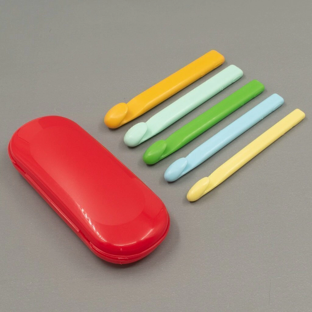 El set de agujas de crochet incluye los números 12, 14, 16, 18 y 20, cubriendo una amplia gama de grosores para diferentes técnicas y tipos de hilos. Ideal tanto para principiantes como para expertas en crochet, viene con un práctico estuche que facilita su organización y transporte.