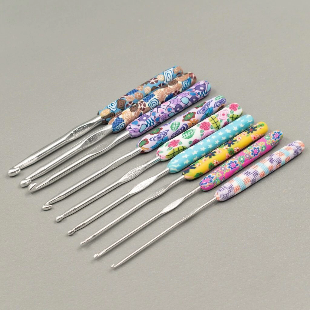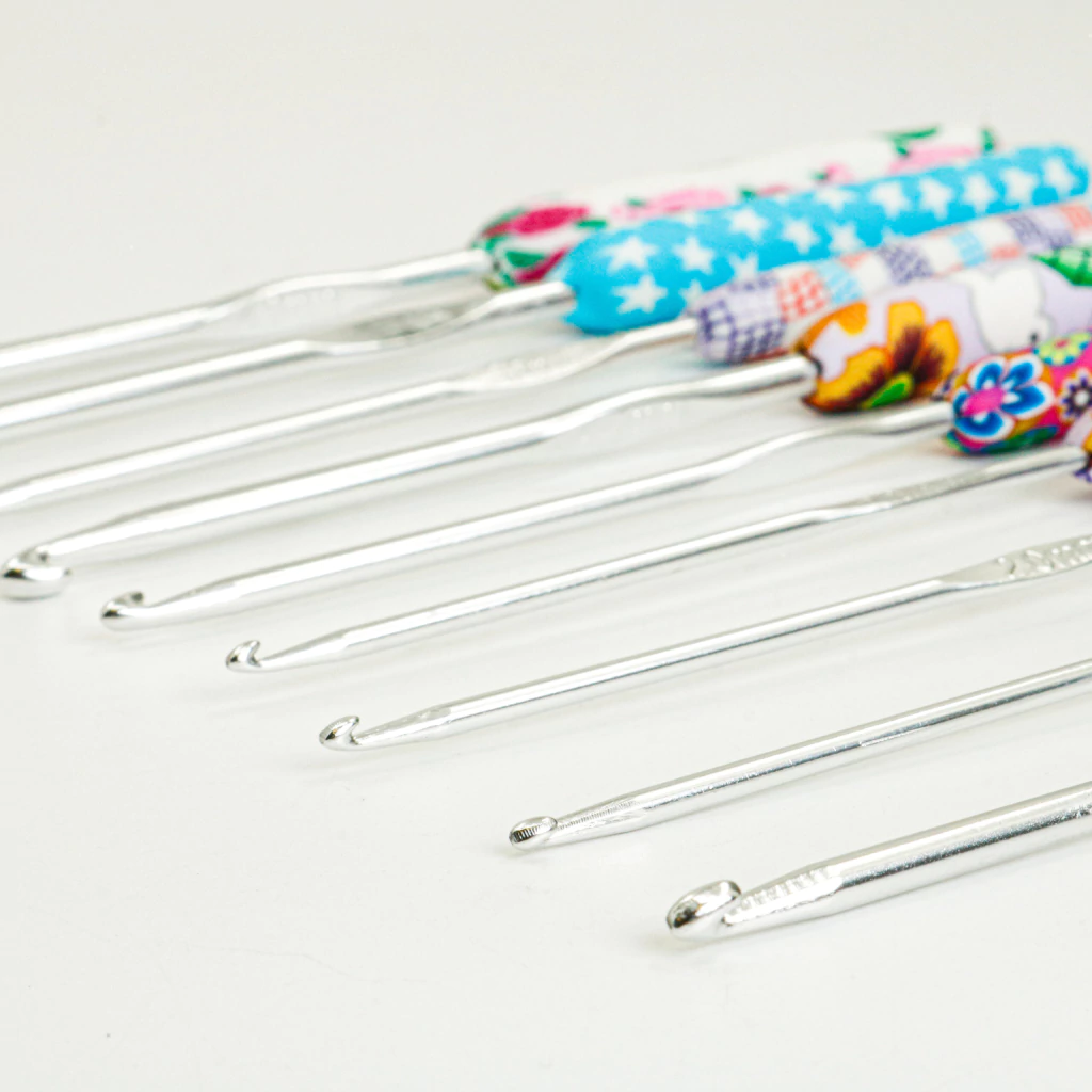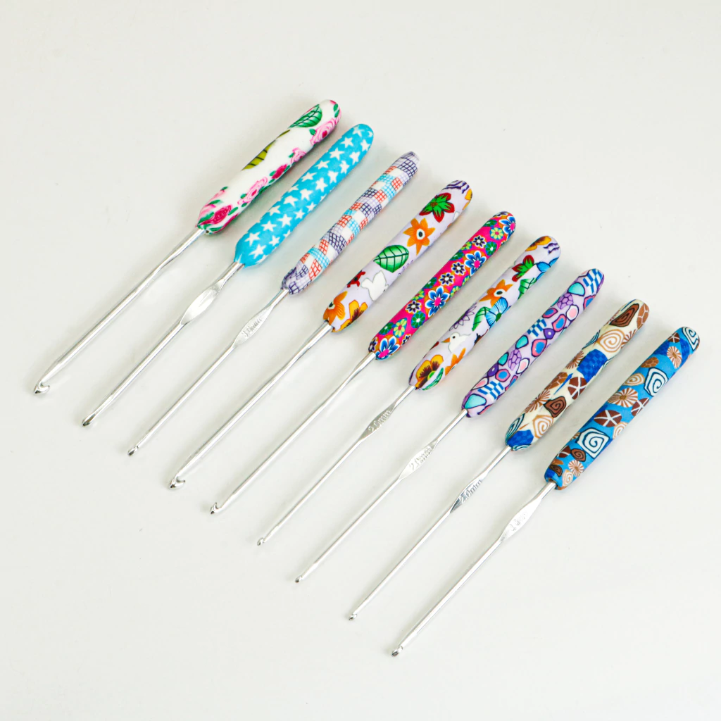 Este set de agujas crochet con diseño estampado incluye 9 unidades en medidas surtidas, ideal para tejedoras que buscan funcionalidad y un toque de estilo. Cada aguja presenta un diseño colorido y ergonómico, pensado para hacer más placenteras tus horas de tejido.