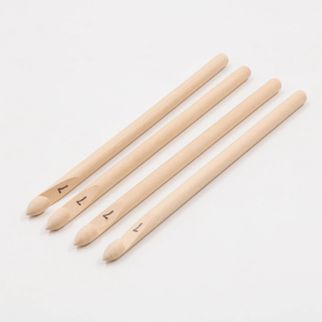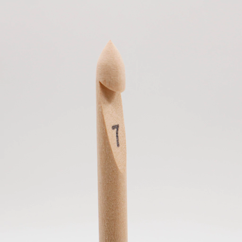 El set de agujas de crochet de madera N°7 incluye 6 unidades, ideales para tejer proyectos con hilos de mayor grosor. Su material de madera proporciona un agarre cómodo y natural, permitiendo un deslizamiento suave del hilo y mayor control en cada puntada.