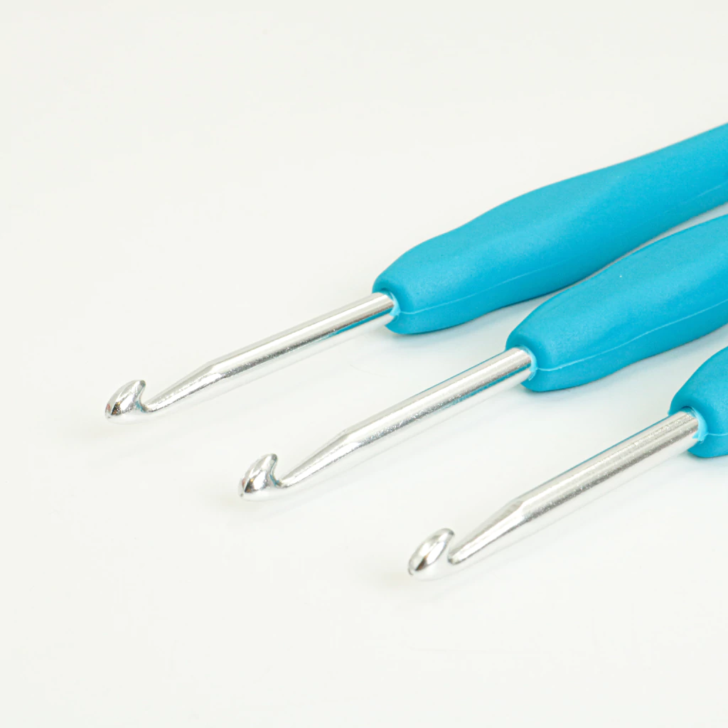 Las agujas de crochet con mango siliconado 4 mm ofrecen un agarre cómodo y seguro, ideal para tejer con hilos medianos y gruesos. Su diseño ergonómico y antideslizante facilita largas jornadas de tejido sin fatiga.