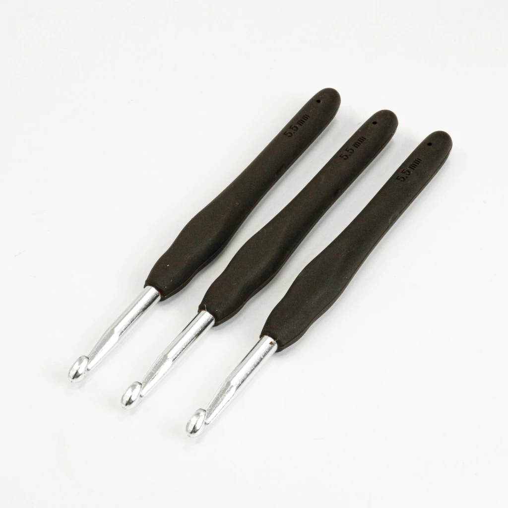 Las agujas de crochet con mango siliconado 5,5 mm proporcionan un agarre ergonómico y cómodo, ideales para trabajar con hilos gruesos y voluminosos. Su diseño antideslizante permite un tejido fluido y sin esfuerzo.
