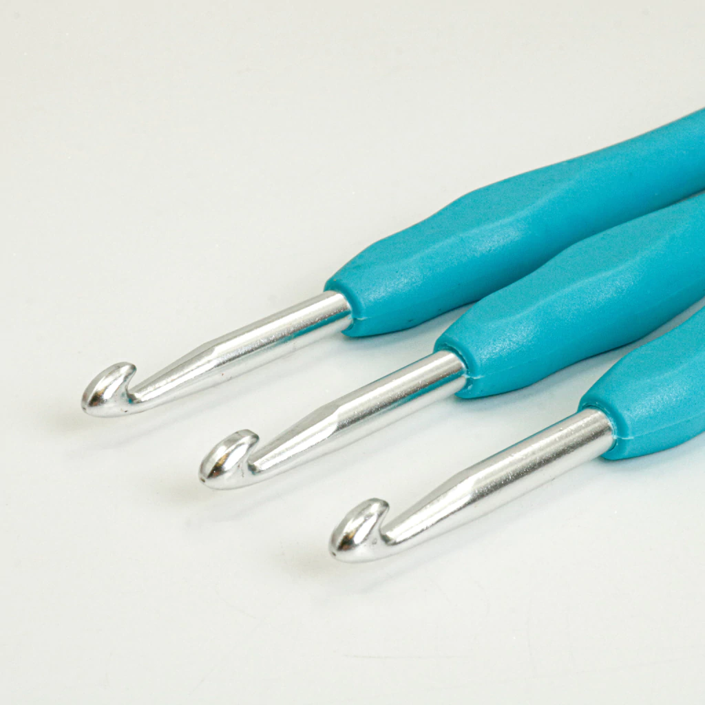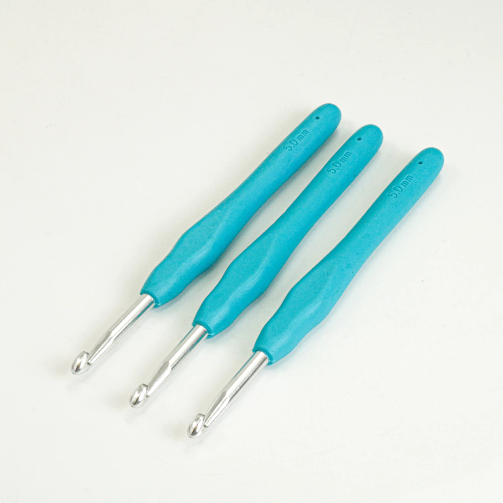 Las agujas de crochet con mango siliconado 5 mm son ideales para trabajos con hilos gruesos, ofreciendo un agarre cómodo y seguro gracias a su empuñadura ergonómica y antideslizante. Perfectas para tejidos voluminosos y proyectos de gran tamaño.