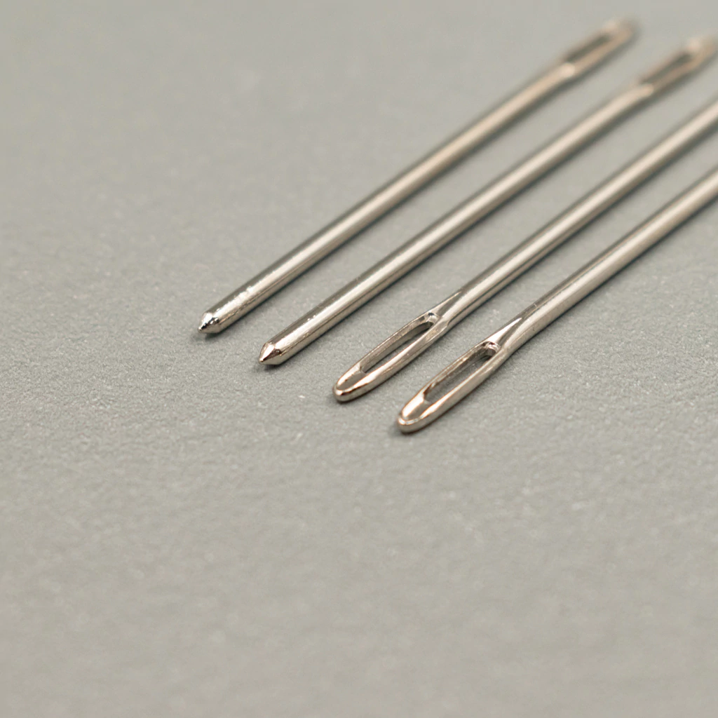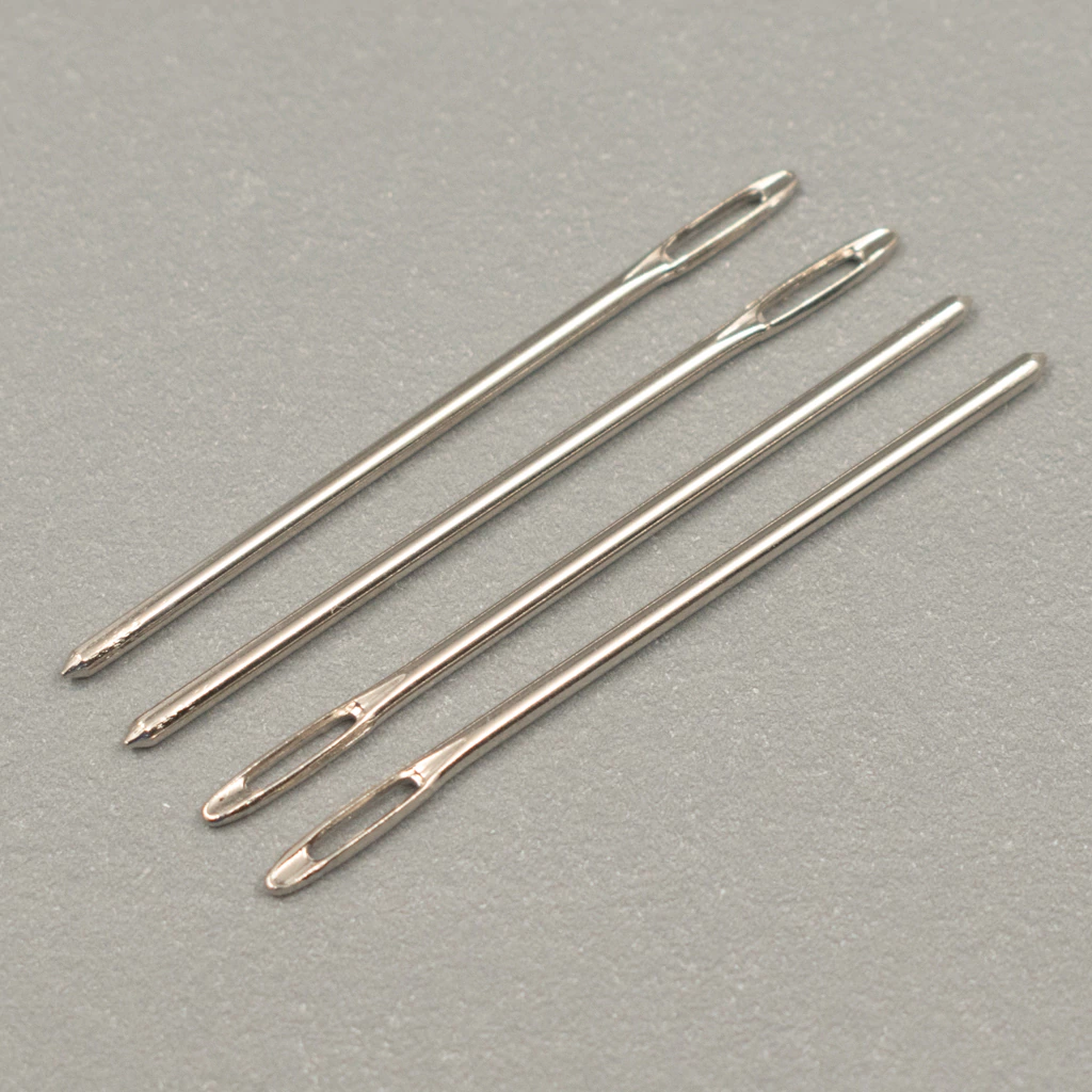 Estas agujas de lana metálicas sin punta son ideales para trabajos de bordado, tejido y costura con lanas gruesas. Su punta redondeada permite atravesar tejidos sin dañarlos, siendo perfectas para tapicería, crochet o terminaciones limpias en prendas tejidas.