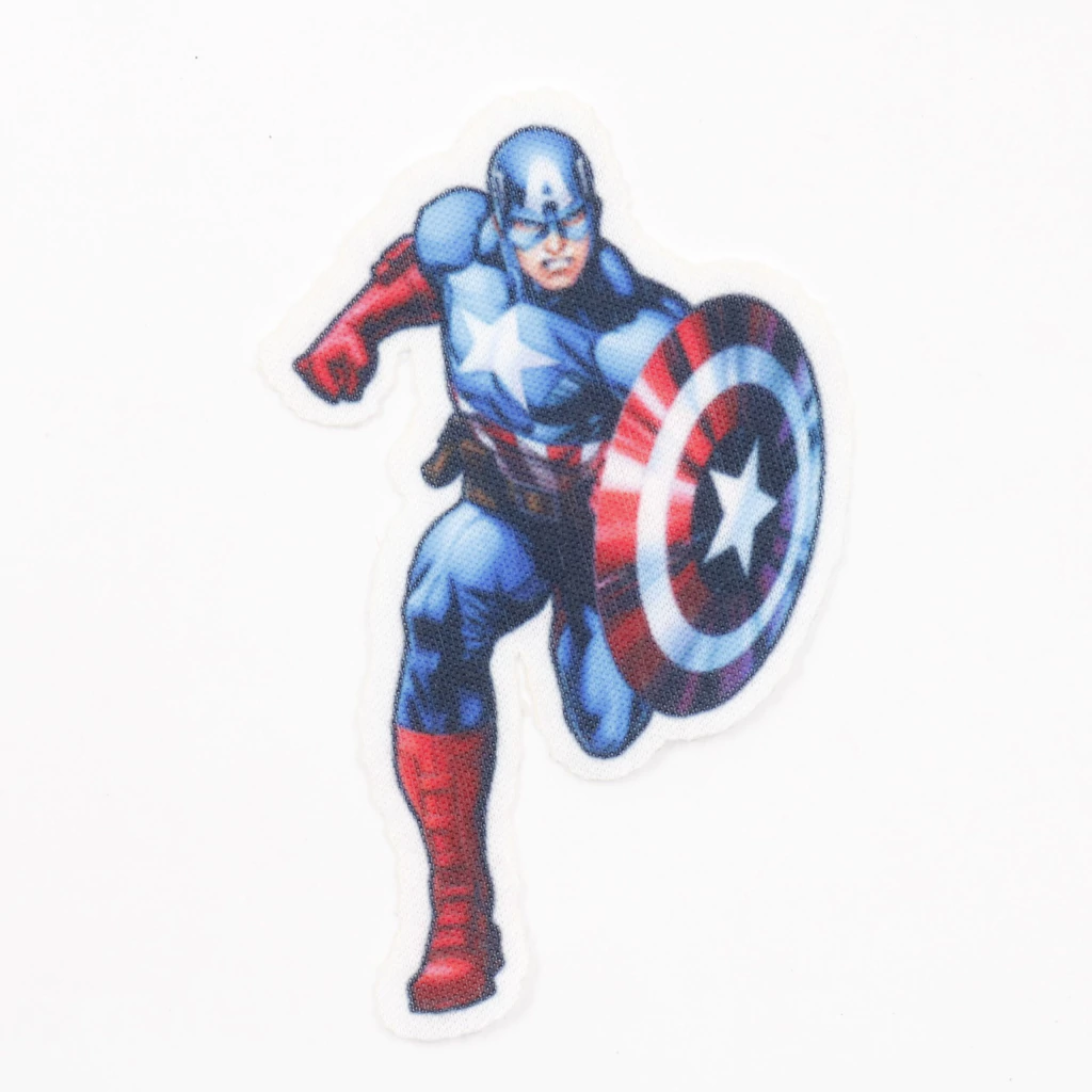 La aplicación estampada termoadhesiva Capitán América es ideal para los fanáticos de los superhéroes. Perfecta para personalizar prendas, mochilas, bolsos o manualidades, aporta un estilo único y divertido con un diseño colorido y llamativo.