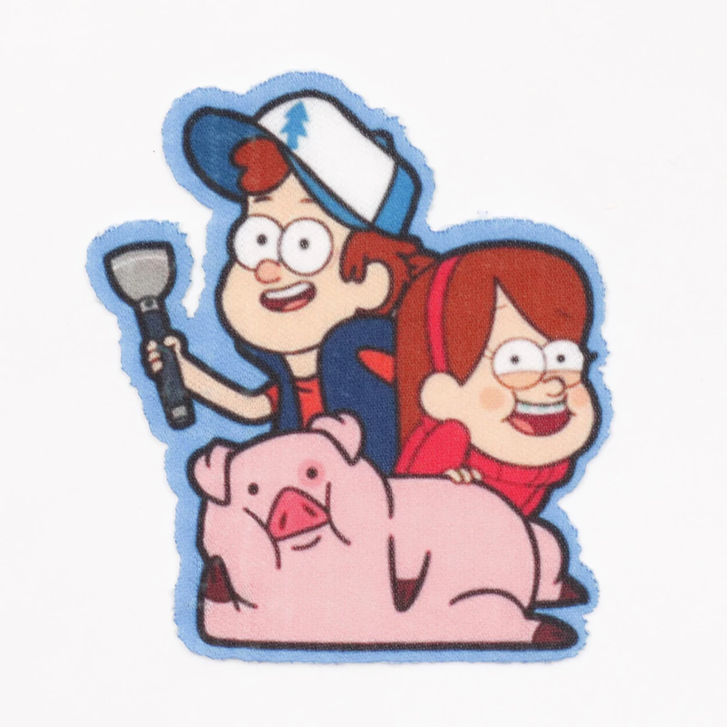 La aplicación estampada termoadhesiva Gravity Falls Cerdito es perfecta para personalizar prendas y accesorios con el tierno personaje de la popular serie animada. Ideal para darle un toque original y divertido a ropa infantil, mochilas y manualidades, con una aplicación rápida y un acabado duradero.