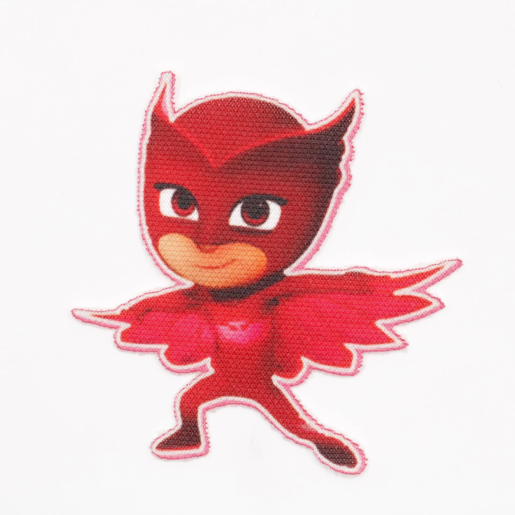 La aplicación termoadhesiva Owlette es ideal para personalizar prendas, mochilas y accesorios con un diseño divertido y colorido. Su tamaño permite un acabado vistoso y resistente.