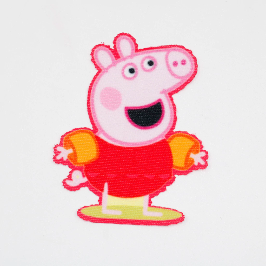 La aplicación termoadhesiva Peppa Pig es ideal para personalizar prendas, mochilas y accesorios con un diseño infantil y divertido. Su tamaño permite un acabado vistoso y resistente, perfecto para proyectos creativos.