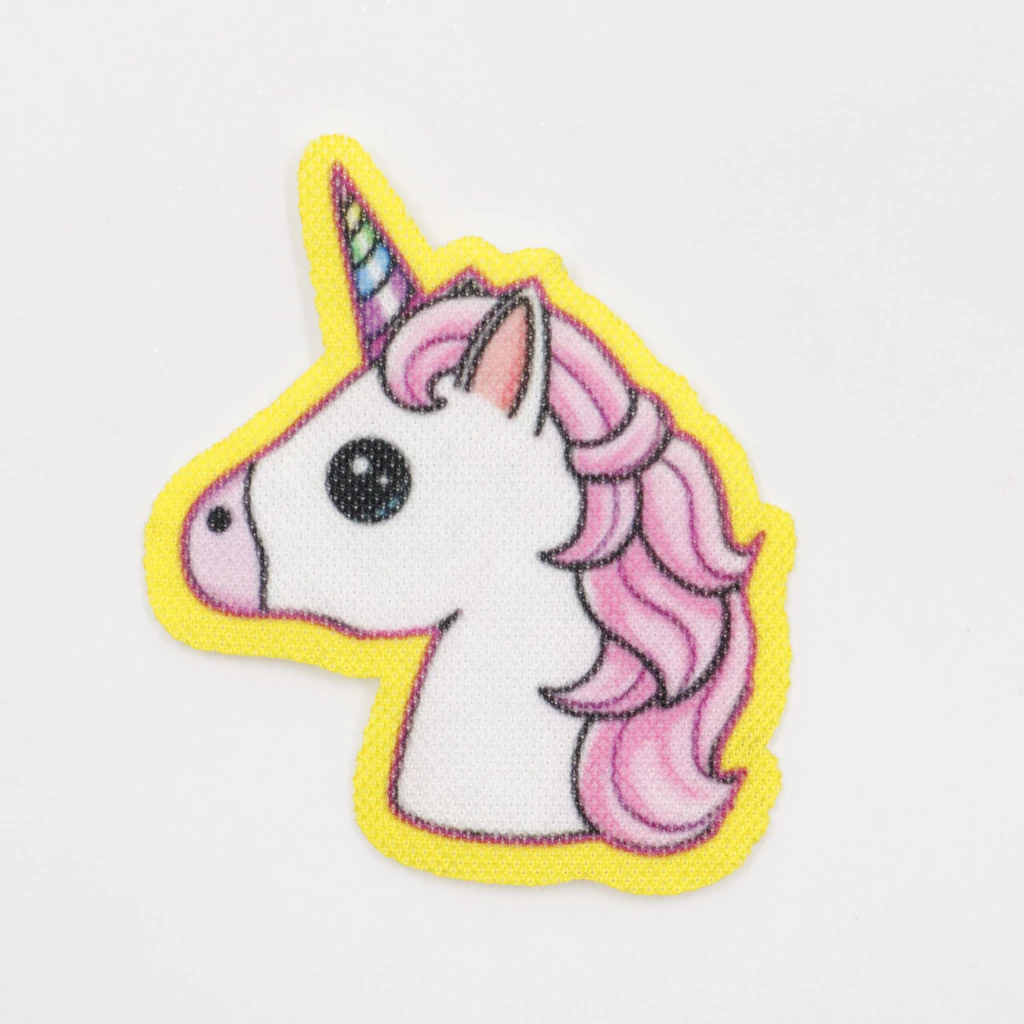 La aplicación estampada termoadhesiva de unicornio perfil es perfecta para dar un toque mágico y tierno a tus prendas y accesorios. Fácil de aplicar con calor, transforma ropa, mochilas o cualquier textil en piezas únicas y llenas de color.