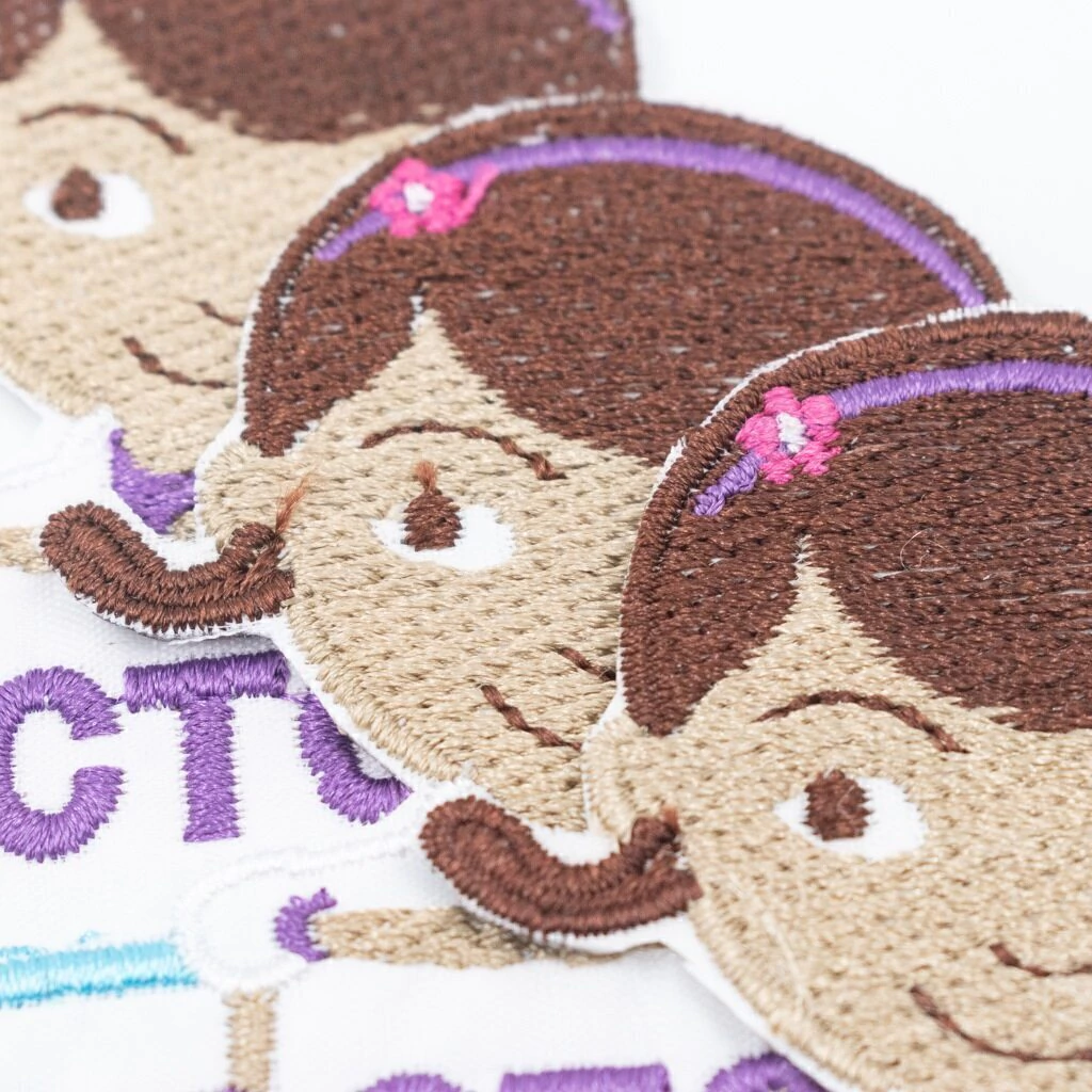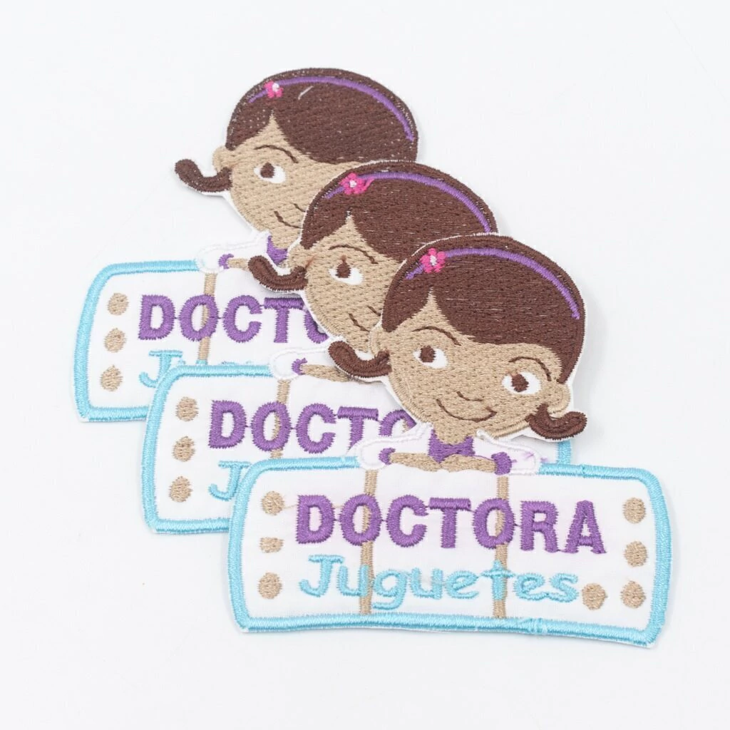 El aplique bordado Doctora Juguetes es ideal para personalizar prendas, mochilas y accesorios con un diseño divertido y colorido. Su formato permite un acabado vistoso y fácil de adherir.