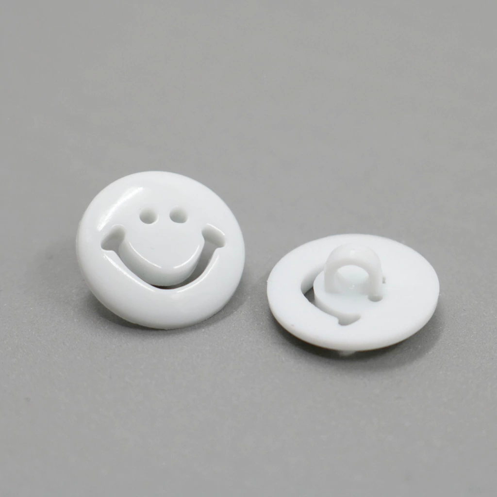 Estos divertidos botones de nylon con pie y diseño de carita son ideales para prendas infantiles, manualidades y proyectos creativos. De 16 mm de diámetro (Talle 24), su formato con pie facilita la costura y les da un toque decorativo único y simpático.