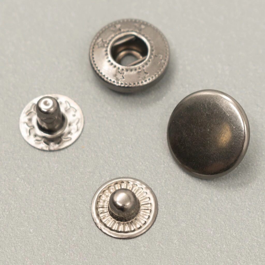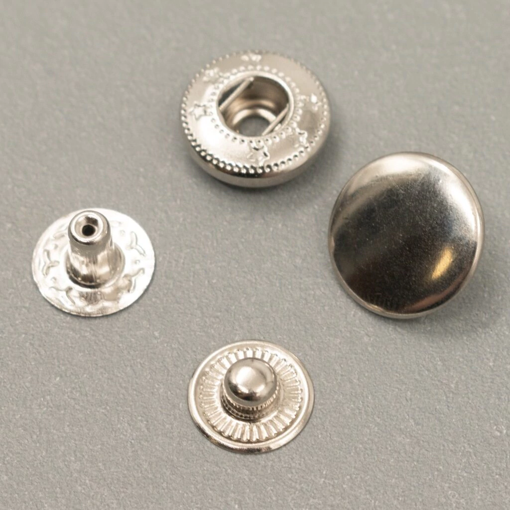 Broche resorte fabricado en bronce inoxidable, ideal para prendas y accesorios que necesitan un cierre duradero y resistente a la corrosión. Perfecto para ropa de alta calidad y proyectos que requieren materiales premium. La colocación se realiza con matriz, asegurando una fijación firme y profesional.