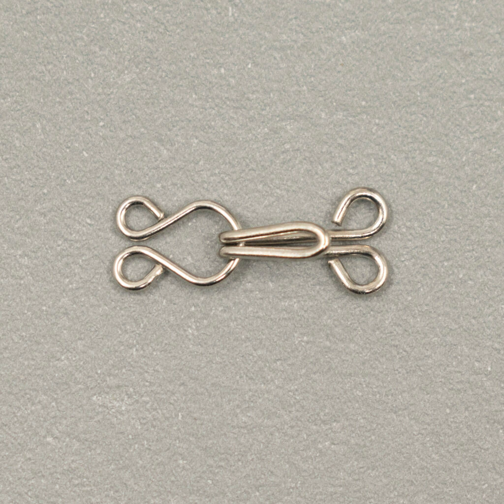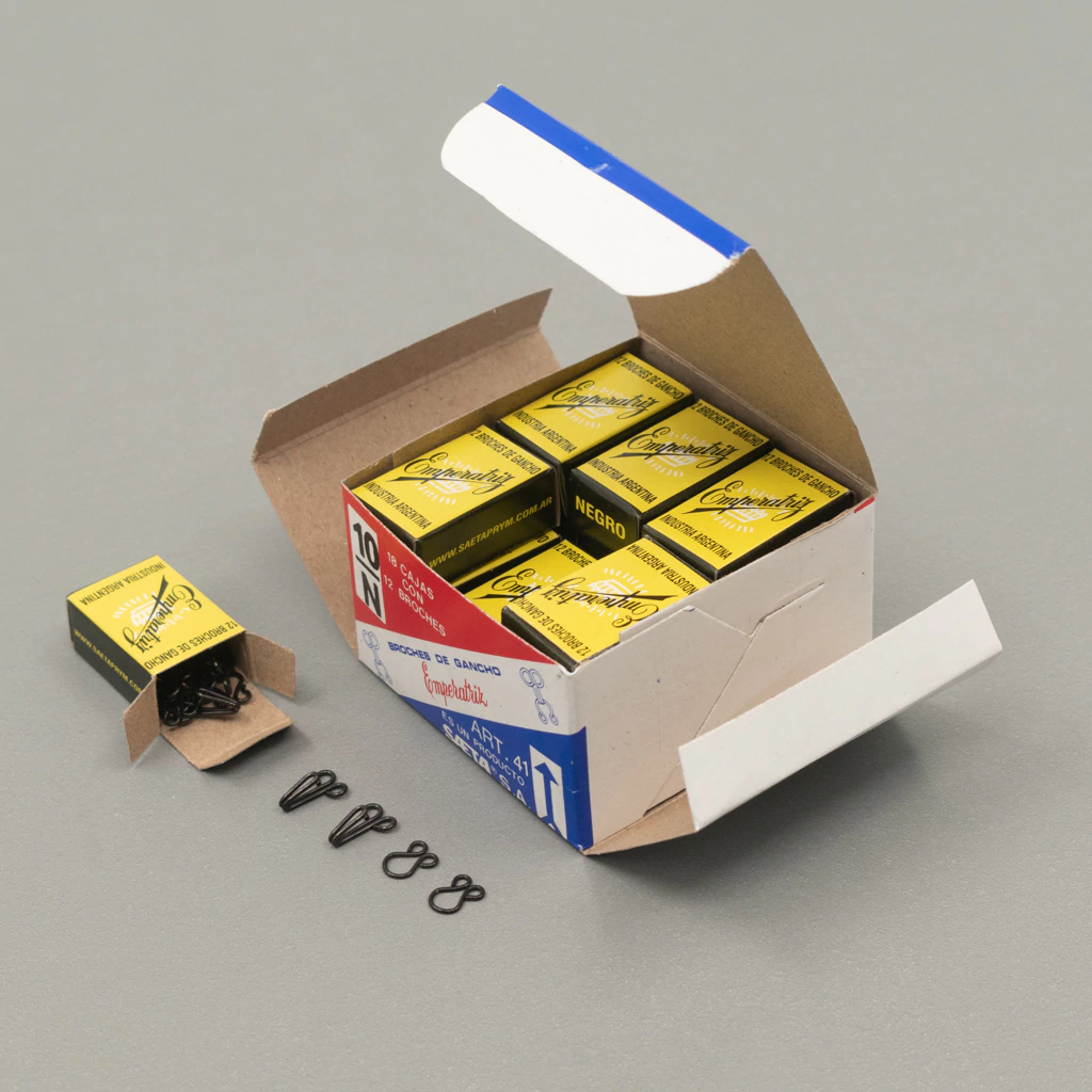 Los broches de gancho para pollera número 8 son ideales para cerrar prendas de vestir como faldas, pantalones, uniformes y ropa de trabajo. Su diseño metálico y discreto proporciona un cierre firme, plano y duradero. La presentación por 18 docenas es perfecta para talleres de costura o uso industrial.