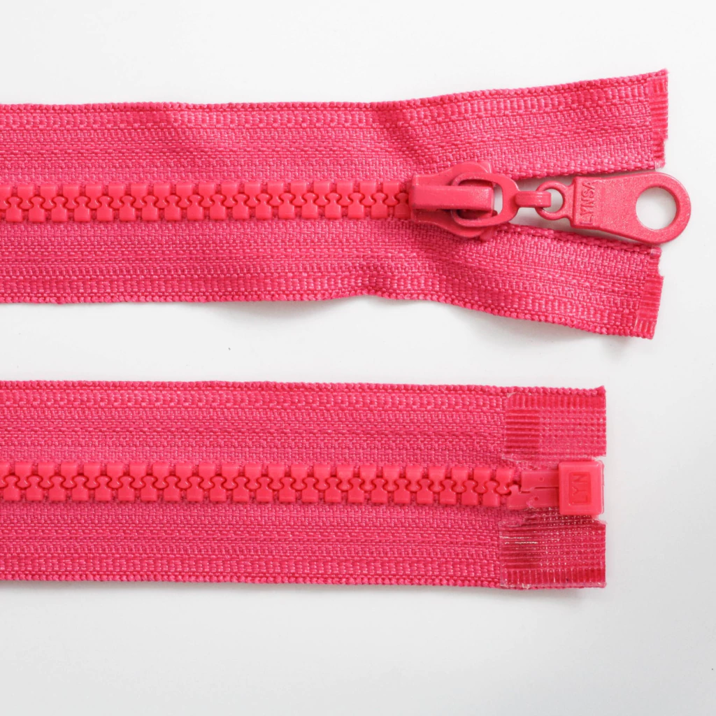 El cierre diente de perro desmontable de 55 cm es ideal para prendas de abrigo largas que requieren apertura completa. Perfecto para camperas, tapados, buzos largos y ropa deportiva. Su deslizamiento suave y construcción resistente aseguran un cierre seguro y duradero. Se presenta en paquetes de 5 unidades.