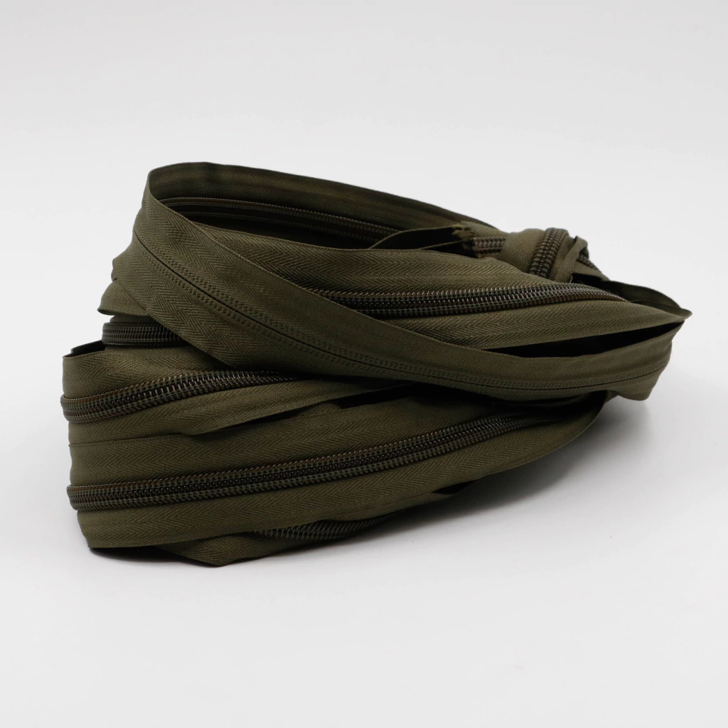 El cierre en cadena de 10 mm color verde musgo es ideal para prendas, manualidades y proyectos de costura. Su diseño resistente y color elegante aporta durabilidad y estilo a cualquier confección o accesorio.