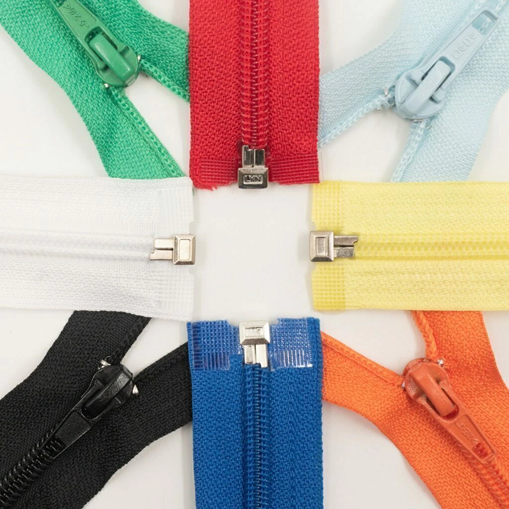 El cierre de nylon desmontable de 55 cm es ideal para prendas de abrigo de largo medio o largo, como camperas, buzos con cierre completo, chaquetas y parkas livianas. Su deslizamiento suave y estructura liviana pero resistente lo convierten en una opción confiable tanto para uso personal como profesional. Se presenta en paquetes de 5 unidades.