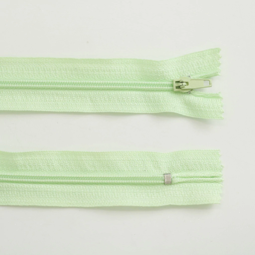 El cierre de nylon fino fijo de 10 cm es ideal para prendas pequeñas, detalles de confección y accesorios que no requieren apertura completa. Ofrece un deslizamiento suave y es adecuado para trabajos de costura delicados. Se presenta en paquetes de 5 unidades.