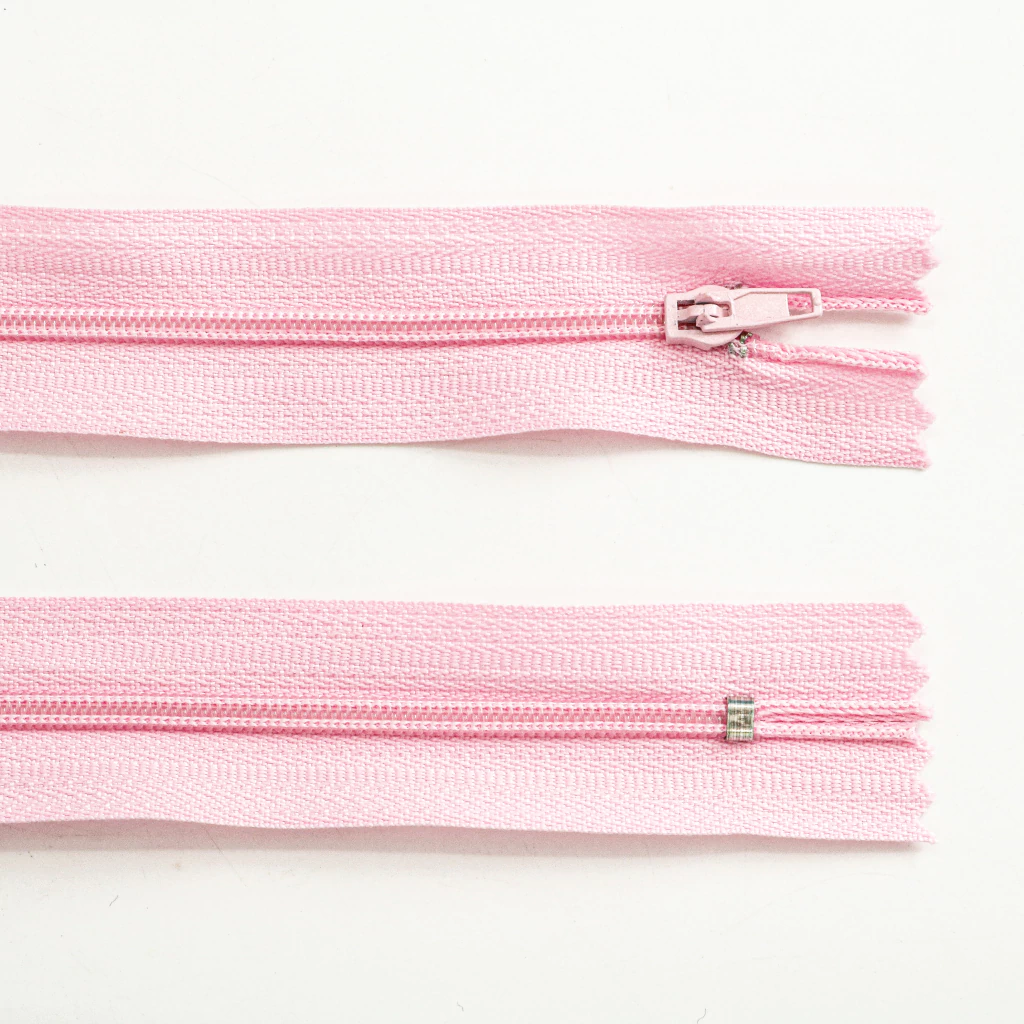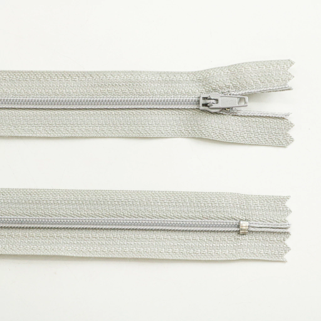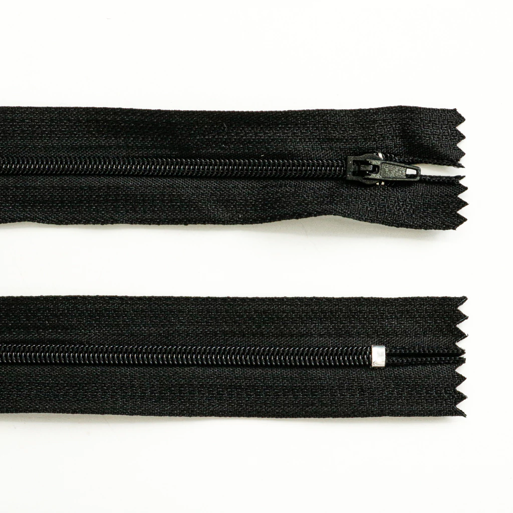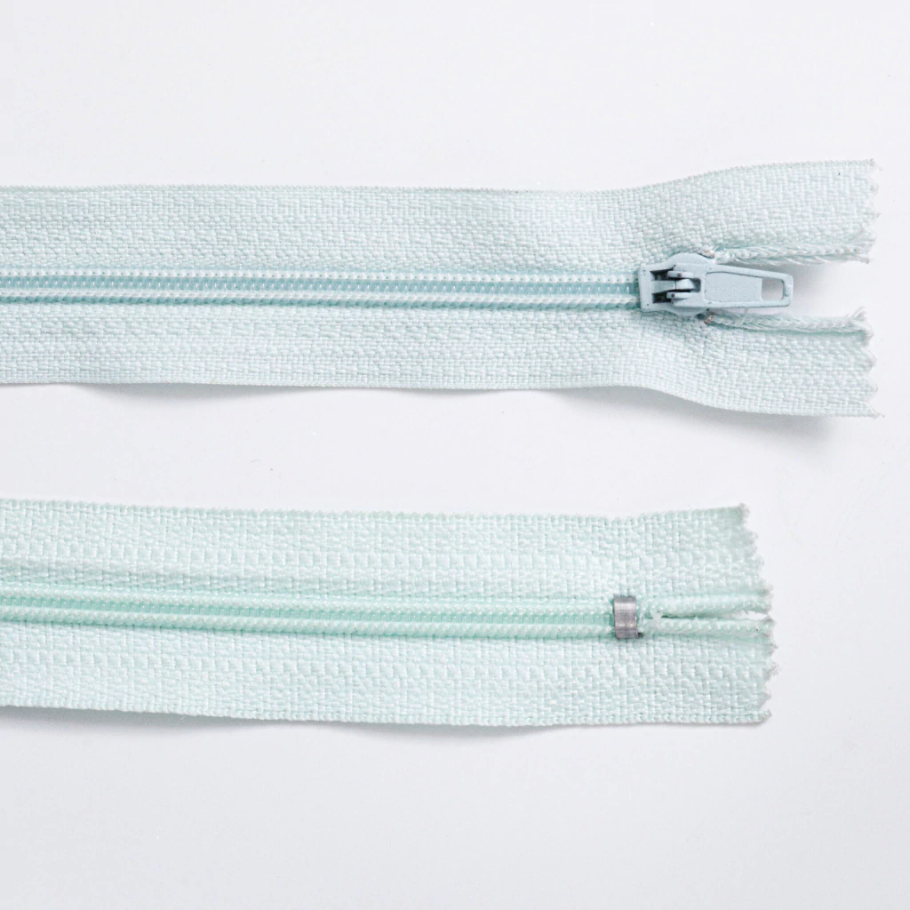 El cierre de nylon fino fijo de 18 cm es una excelente opción para prendas y accesorios que requieren un cierre discreto, liviano y funcional. Ofrece un deslizamiento suave y se entrega en paquetes de 5 unidades.