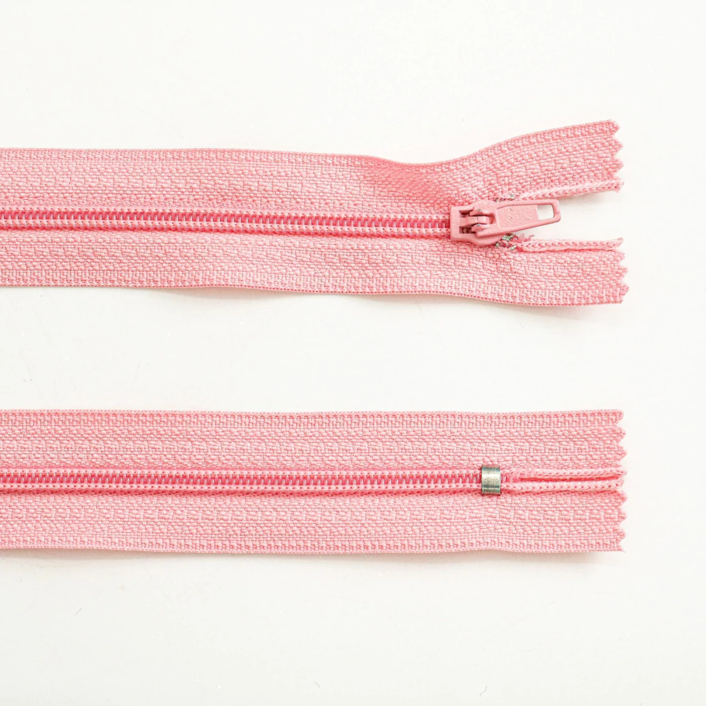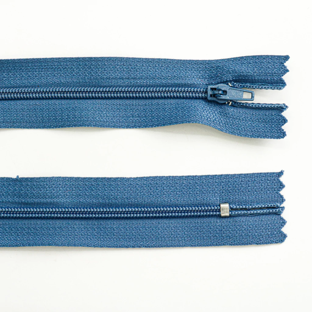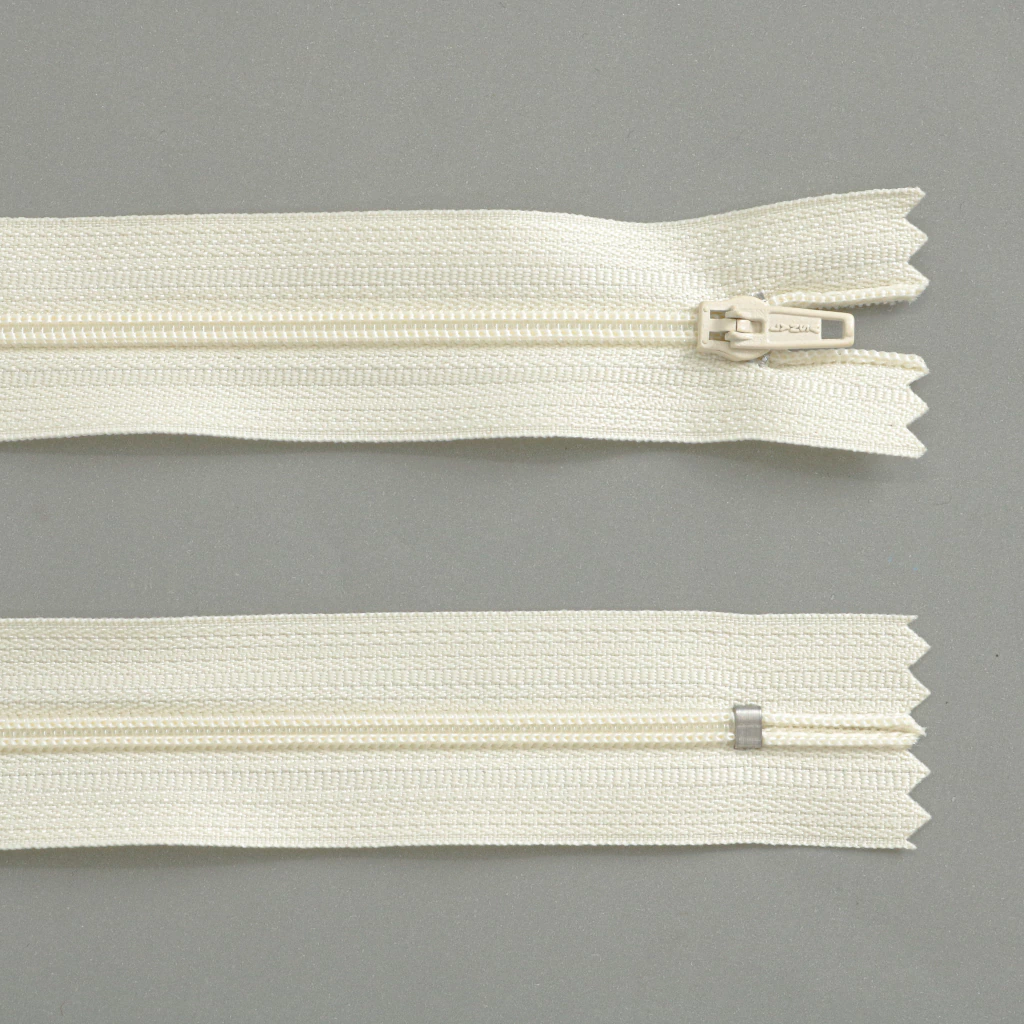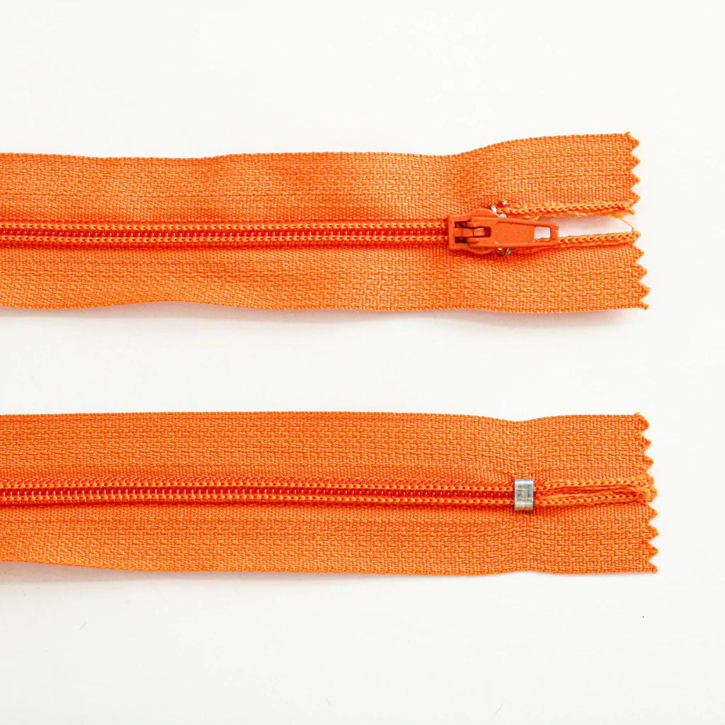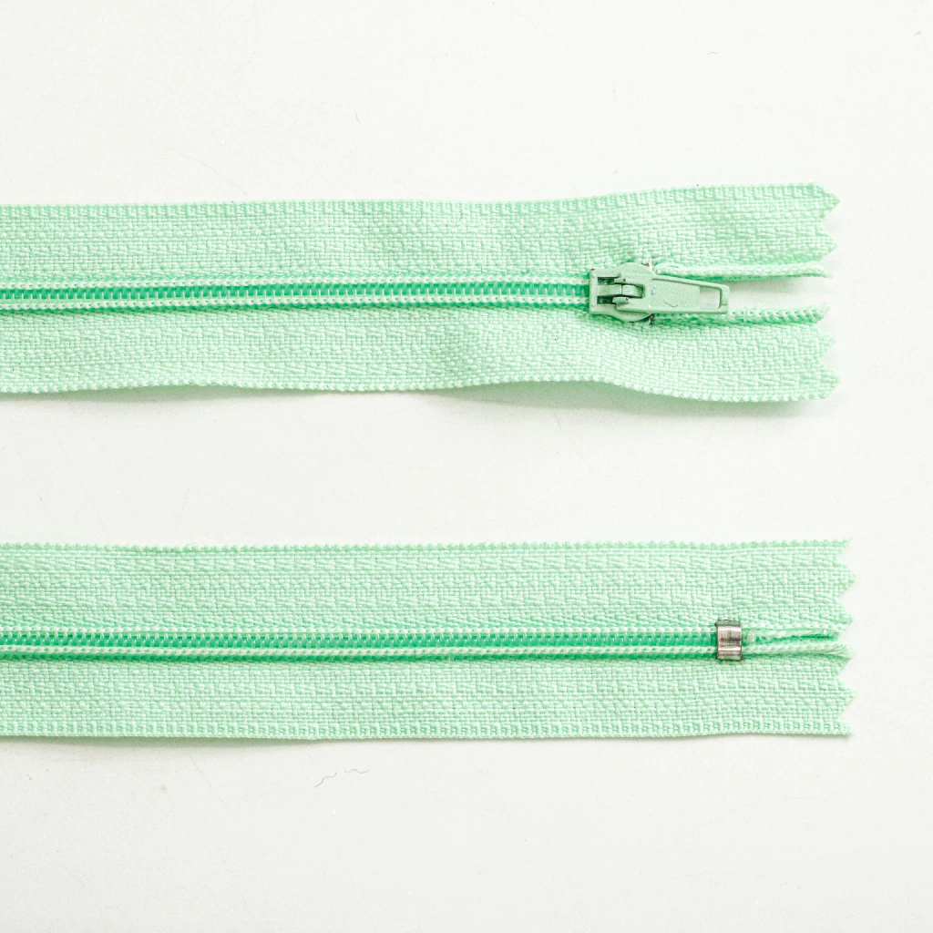 El cierre de nylon fino fijo de 18 cm es una excelente opción para prendas y accesorios que requieren un cierre discreto, liviano y funcional. Ofrece un deslizamiento suave y se entrega en paquetes de 5 unidades.