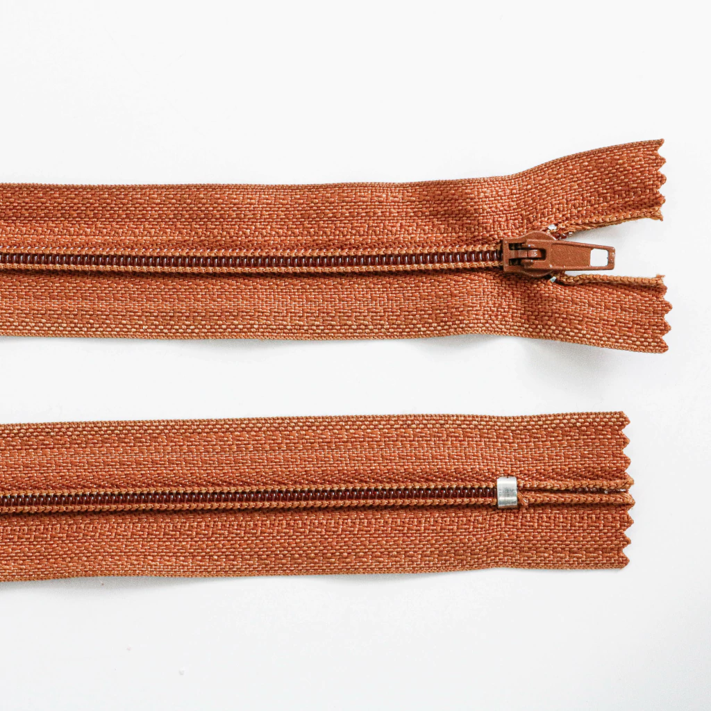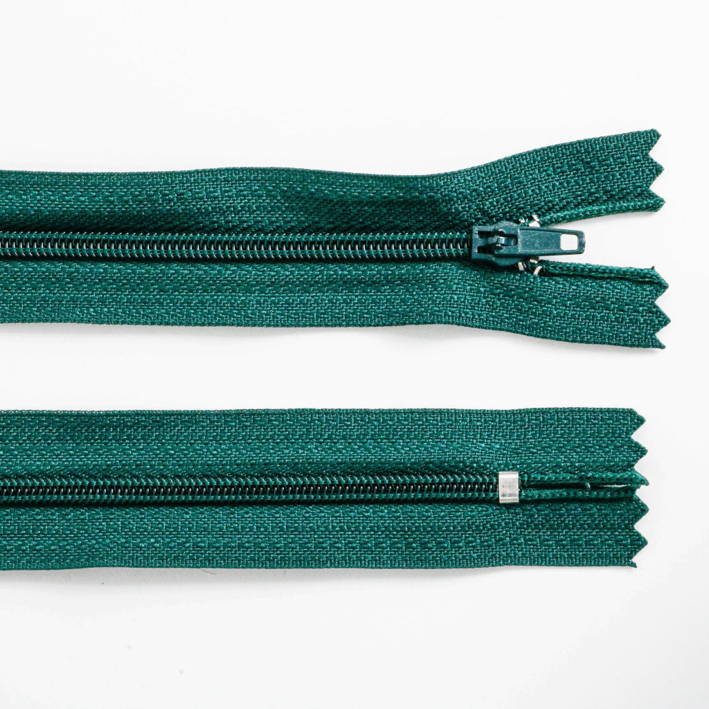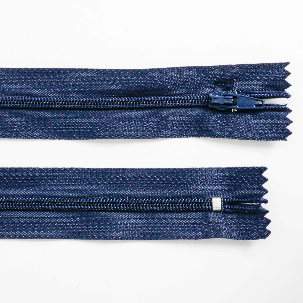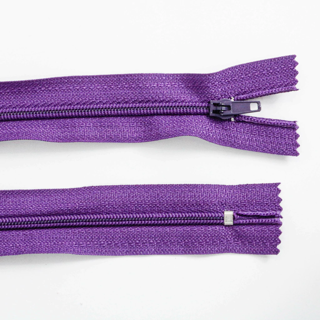 El cierre de nylon fino fijo de 18 cm es una excelente opción para prendas y accesorios que requieren un cierre discreto, liviano y funcional. Ofrece un deslizamiento suave y se entrega en paquetes de 5 unidades.