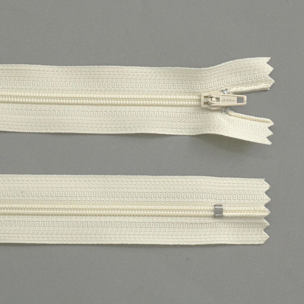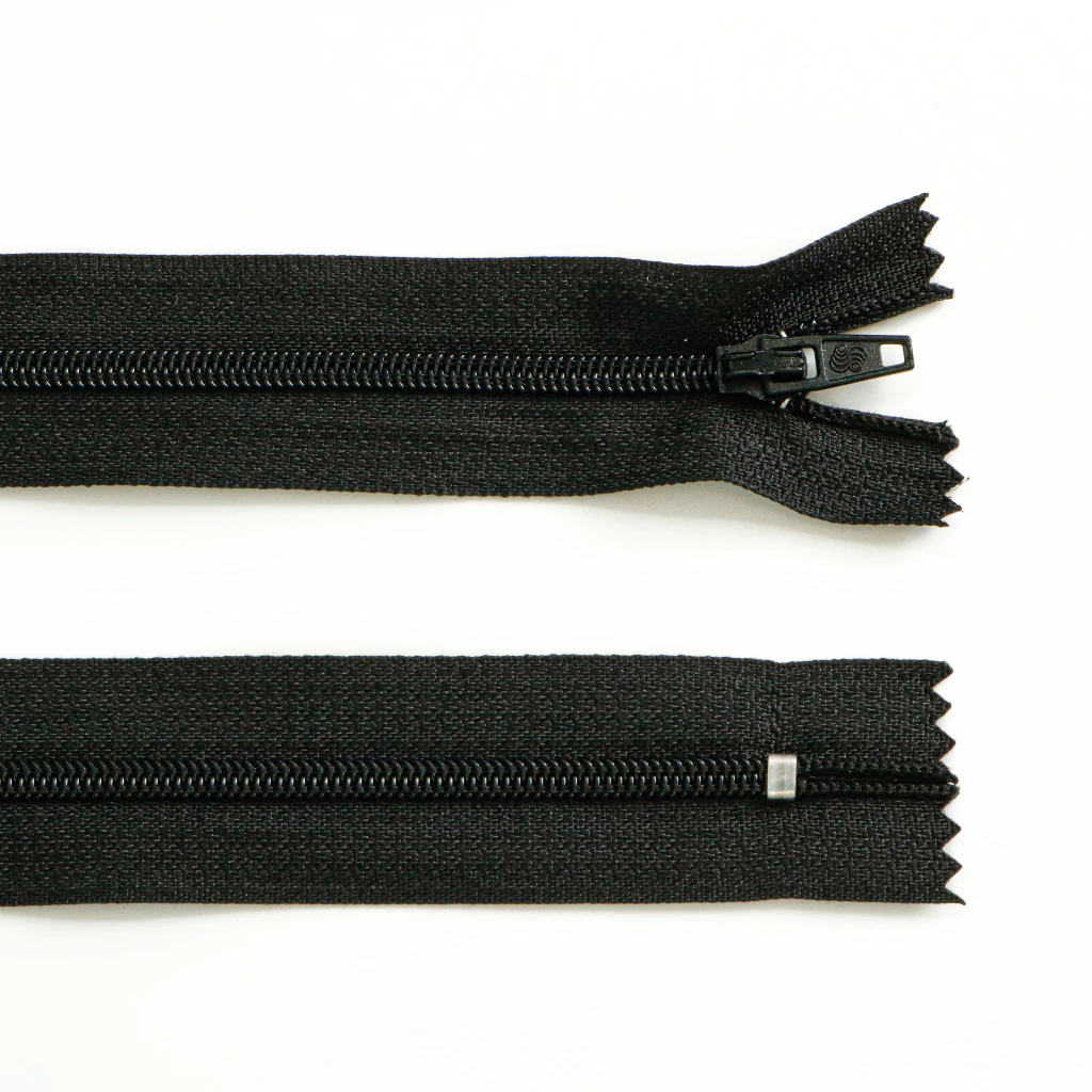 El cierre de nylon fino fijo de 30 cm es ideal para confección de prendas, fundas, mochilas y otros accesorios. Proporciona un deslizamiento suave y una excelente funcionalidad. Se presenta en paquetes de 5 unidades.