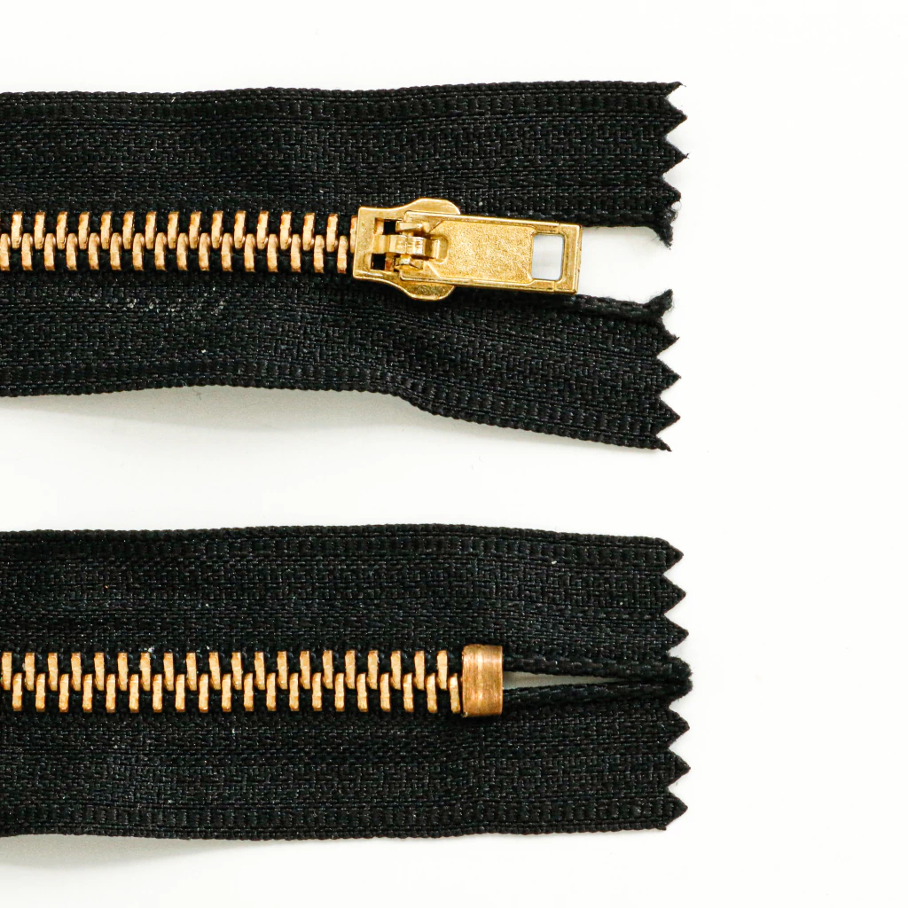 El cierre metálico fijo de 6 cm en bronce con cadena de 5 mm es ideal para aplicaciones puntuales como bolsillos frontales/grandes de pantalones, monederos, billeteras, estuches pequeños y aplicaciones técnicas de marroquinería. Al ser un cierre fijo (no desmontable), mantiene ambos extremos unidos, brindando resistencia y seguridad. Se presenta en pack x 5 unidades, ideal para producción artesanal o confección profesional.