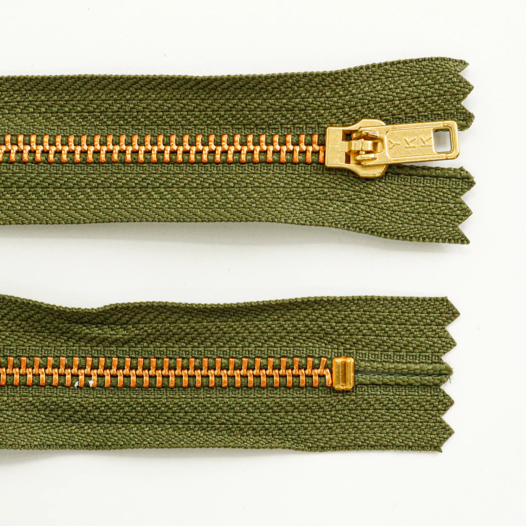 El cierre fijo de bronce YKK CAD 5 de 8 cm ofrece alta resistencia y durabilidad con un acabado clásico. Ideal para prendas que requieren un toque robusto y elegante. Perfecto para camperas, bolsos y ropa técnica. Disponible en paquetes de 5 unidades.