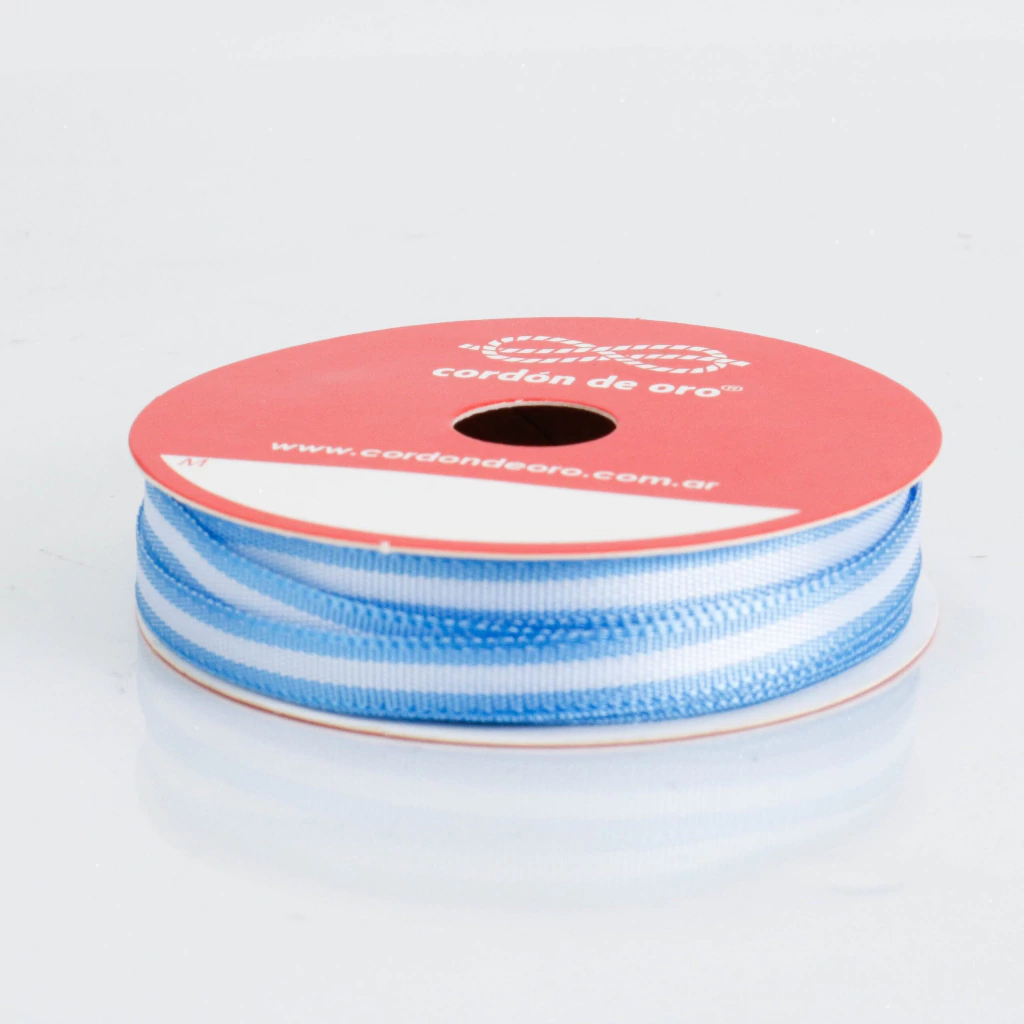 La cinta Argentina N°1 de 6mm, marca Cordón de Oro, es ideal para escarapelas, pequeños detalles decorativos y manualidades escolares. Su formato angosto realza los colores celeste y blanco de nuestra bandera en trabajos delicados y conmemorativos.
