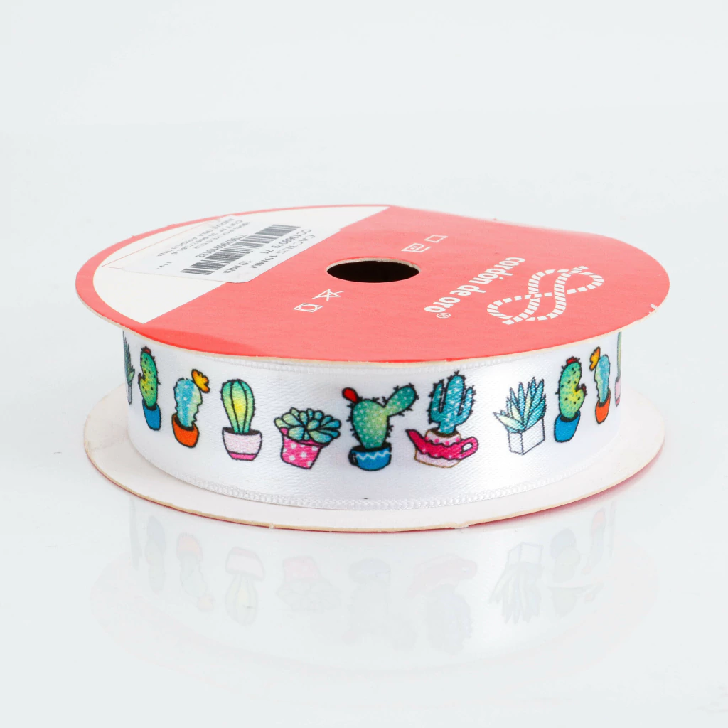 La cinta estampada con diseño de cactus de 19 mm es una opción divertida y moderna para manualidades, decoración, envoltorios y proyectos creativos. Su diseño colorido y alegre la hace ideal para temáticas botánicas, fiestas o detalles únicos en tus creaciones. Viene en rollo de 10 metros.