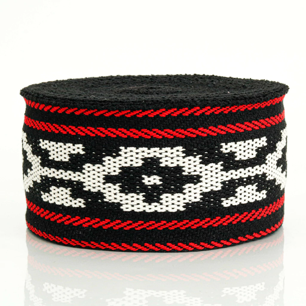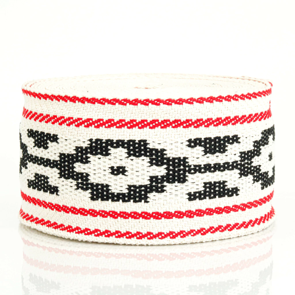 Cinta faja gaucha en algodón resistente, ancho 80 mm y largo 10 m. Ideal para indumentaria tradicional, artesanías y decoración, con tejido firme y duradero.