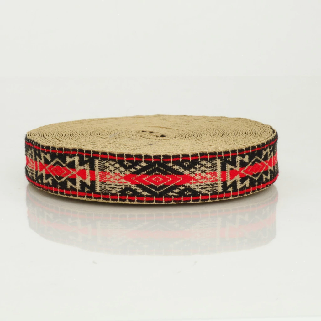 Cinta galón estilo folk fabricada en poliéster resistente, con un ancho de 25 mm y un largo de 15 metros. Ideal para decoración de prendas, artesanías, manualidades, tapicería y proyectos de estilo tradicional o bohemio. Su diseño decorativo y duradero realza terminaciones y detalles, aportando un toque distintivo.