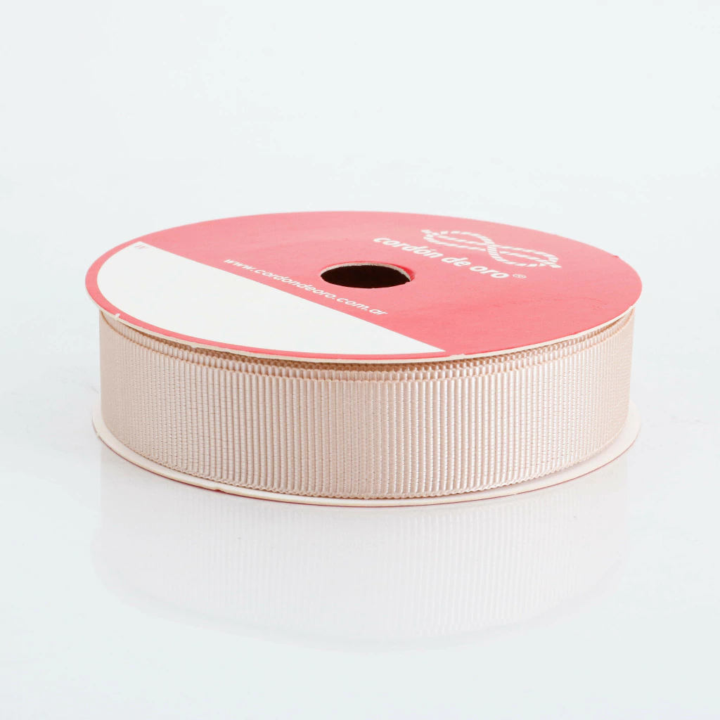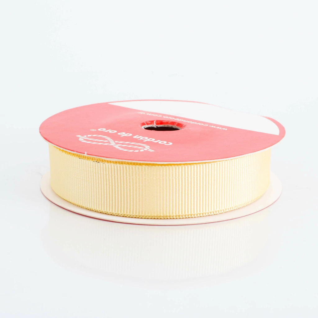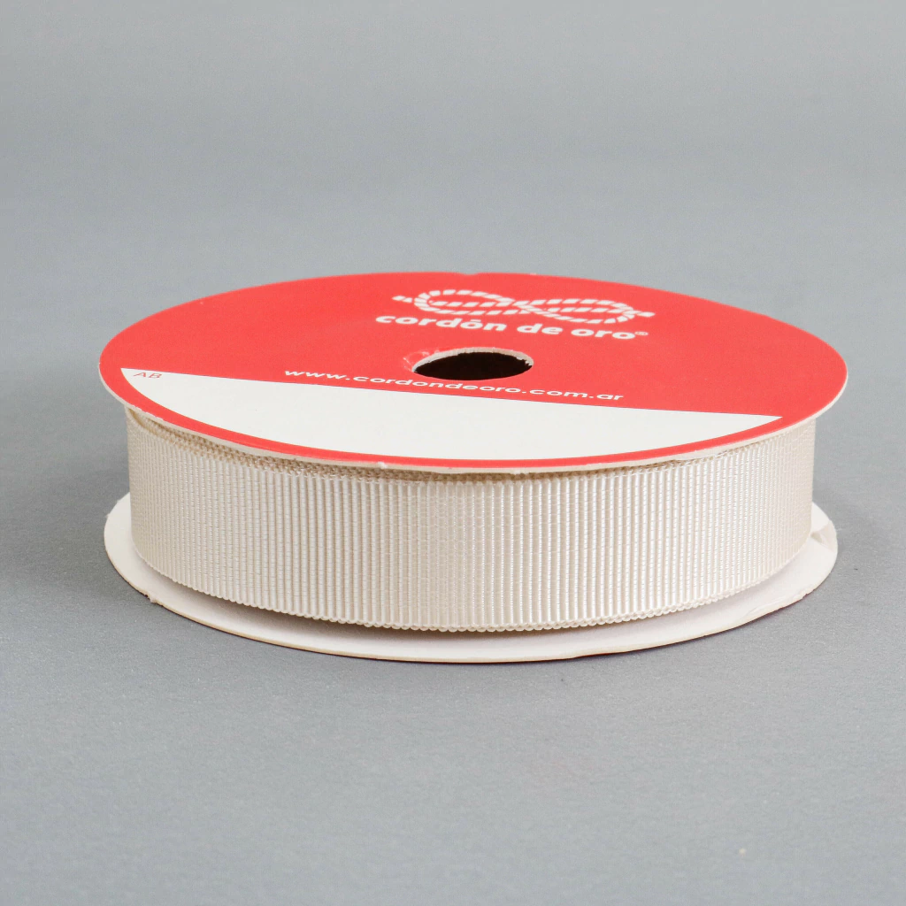 La cinta gross de seda N°3 con detalle de cordón dorado ofrece un acabado elegante y sofisticado, ideal para realzar moños, envoltorios y decoraciones exclusivas. Su textura acanalada y el toque dorado aportan distinción a tus proyectos creativos.