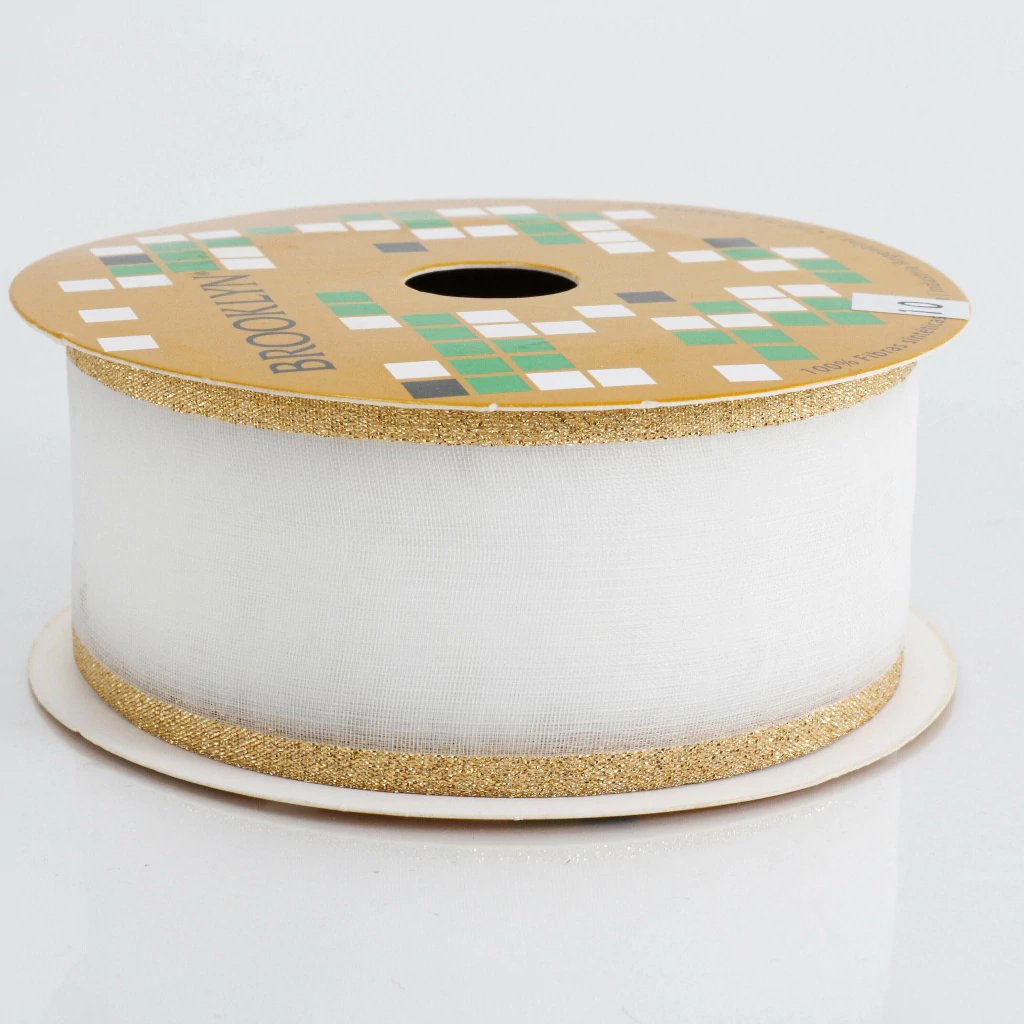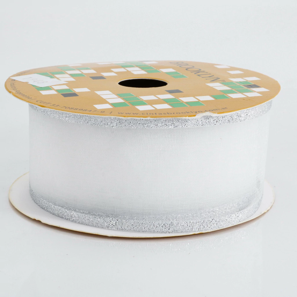 La cinta Brooklyn de organza con borde de lurex 1948 de 35 mm es ideal para decoraciones llamativas y elegantes. Su cuerpo semitransparente de organza, combinado con bordes brillantes de lurex, la convierte en una opción sofisticada para moños grandes, embalajes, arreglos florales y manualidades de alto impacto visual.