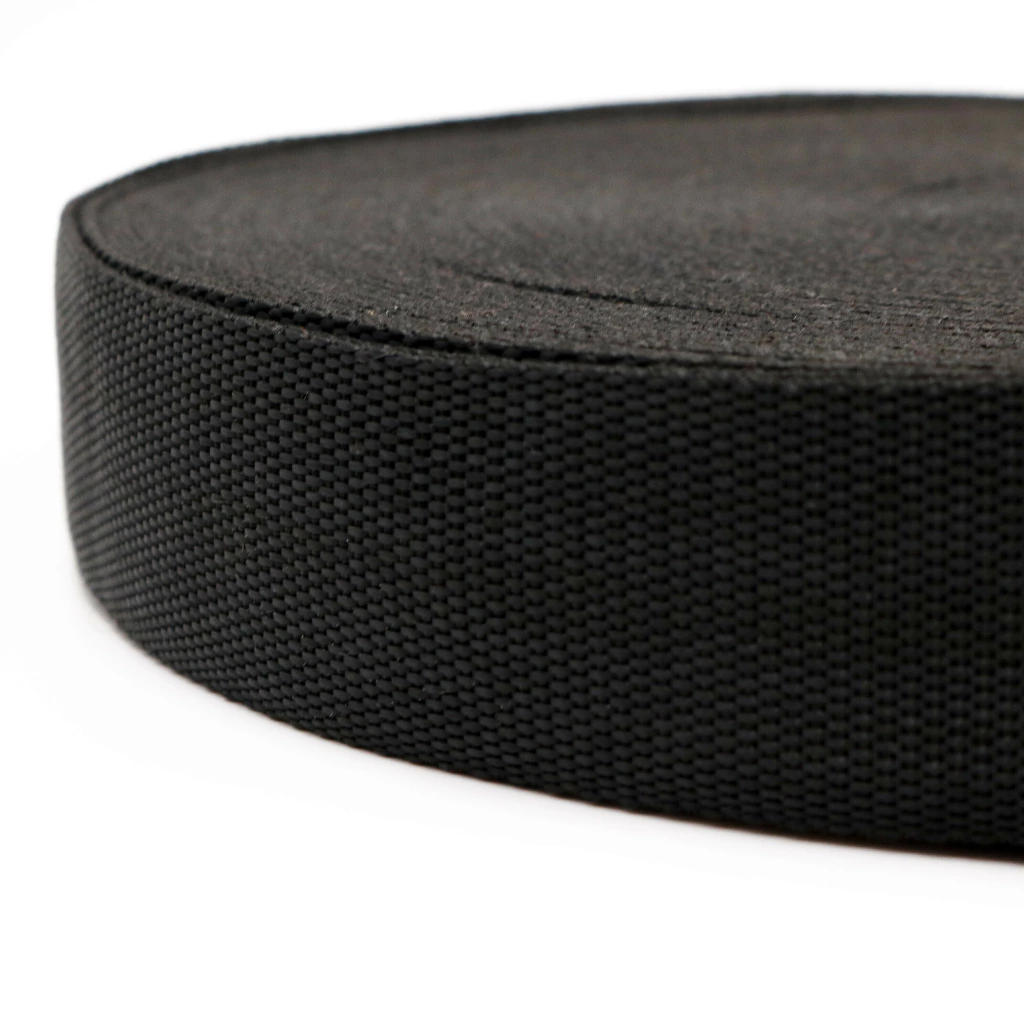 La cinta mochilera de 40 mm es una opción ancha y resistente, ideal para confecciones robustas como mochilas grandes, correajes, arneses, cinturones de trabajo, accesorios outdoor o tácticos. Su ancho aporta mayor superficie de soporte y seguridad, mientras que su composición sintética asegura durabilidad y resistencia frente al uso intensivo. Se presenta en rollo de 50 metros, ideal para talleres y fabricantes textiles.