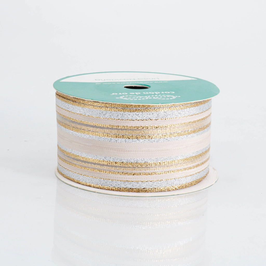 La cinta navideña con lurex y organza Maria de 40 mm combina elegancia y calidad para tus proyectos de decoración y manualidades. Ideal para envoltorios, moños grandes y detalles sofisticados, aporta un acabado impecable y duradero.