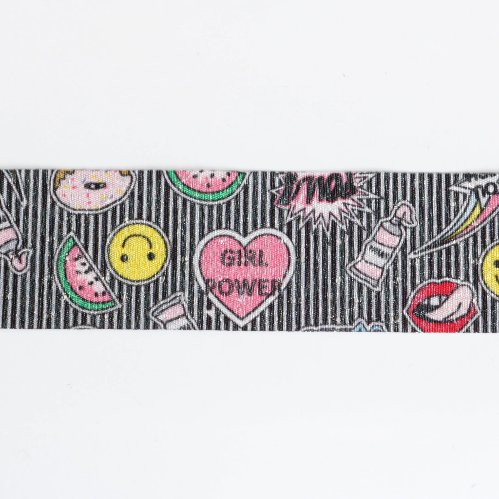 La cinta Parches de 38 mm presenta un diseño divertido y colorido con motivos de parches que aportan un toque original y juvenil a tus proyectos de decoración, envoltorios y manualidades.