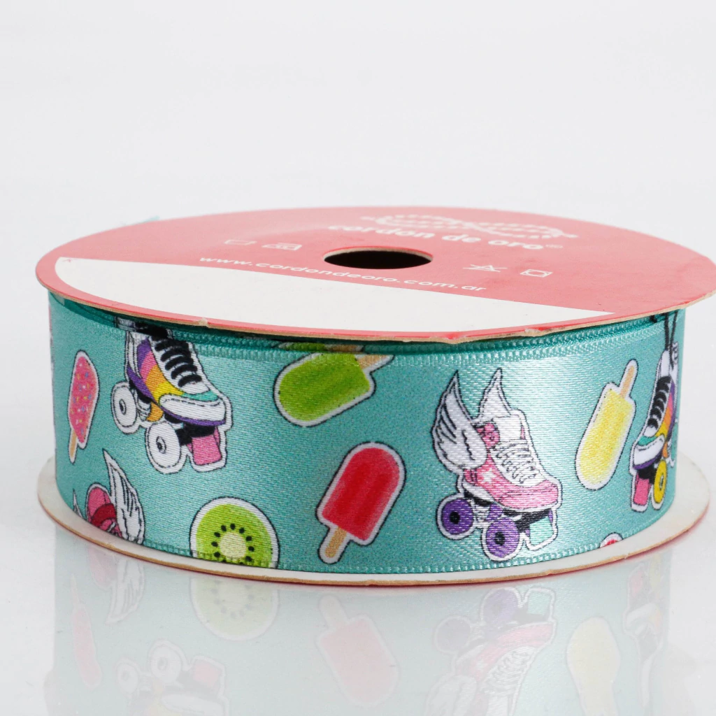 La cinta Patines de 25 mm presenta un diseño divertido y juvenil inspirado en patines, ideal para decoraciones temáticas, envoltorios originales, moños y manualidades creativas. Perfecta para proyectos que buscan un toque dinámico y alegre.
