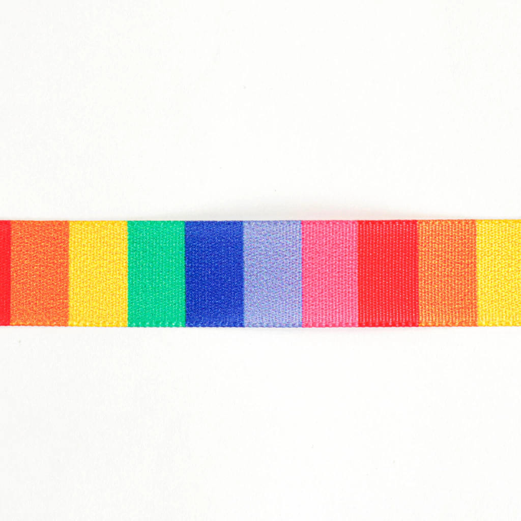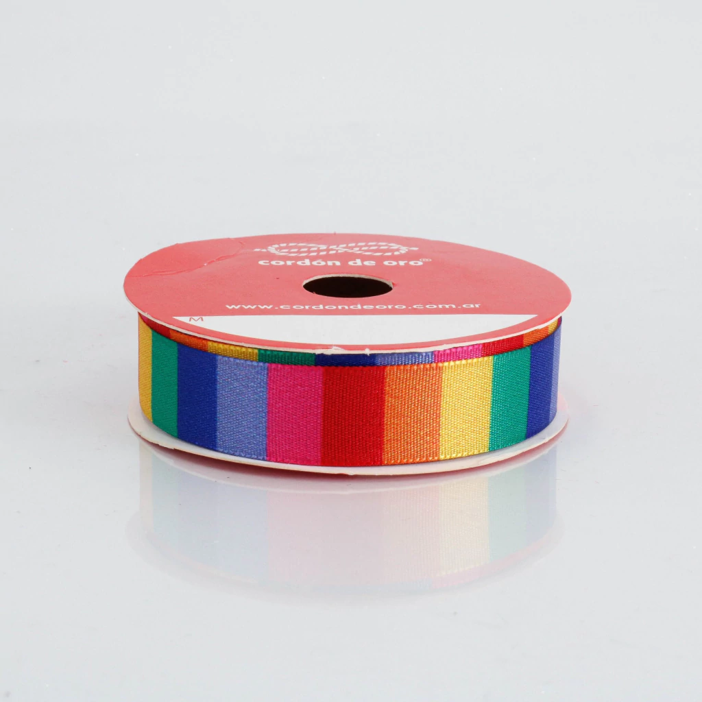 La cinta rayada Arcoíris de 15 mm se destaca por su diseño colorido y vibrante, ideal para decoraciones alegres, envoltorios, manualidades y proyectos creativos. Su combinación de colores llamativos aporta un toque divertido y original a cualquier presentación.