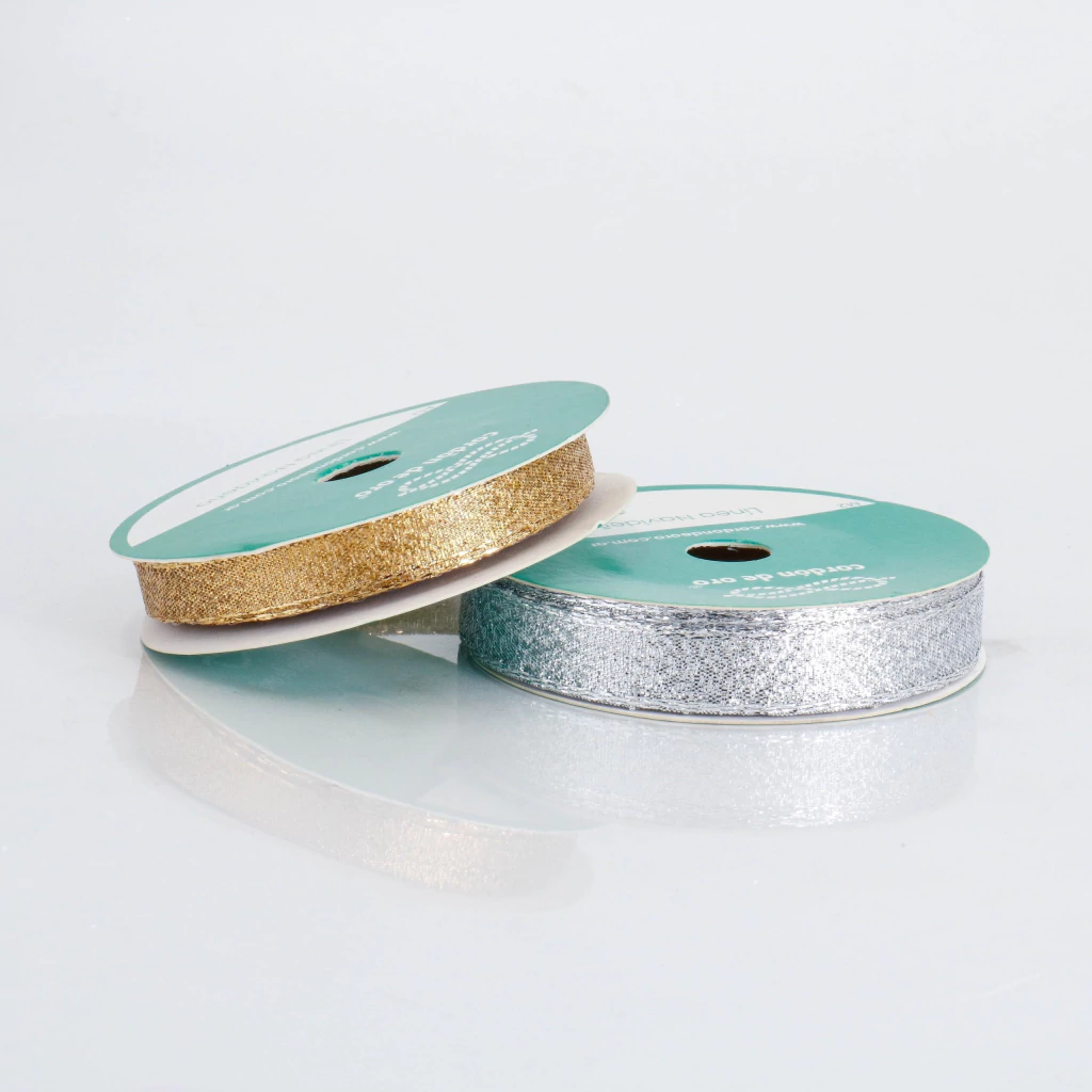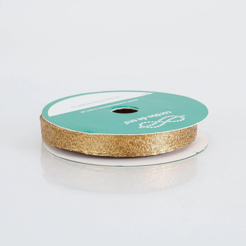 La cinta de lurex cordón de oro de 10 mm de ancho es perfecta para decoraciones elegantes, moños brillantes y proyectos artesanales. Su textura metálica y acabado dorado realzan cualquier presentación, siendo ideal para eventos, embalajes finos, adornos y costura creativa.