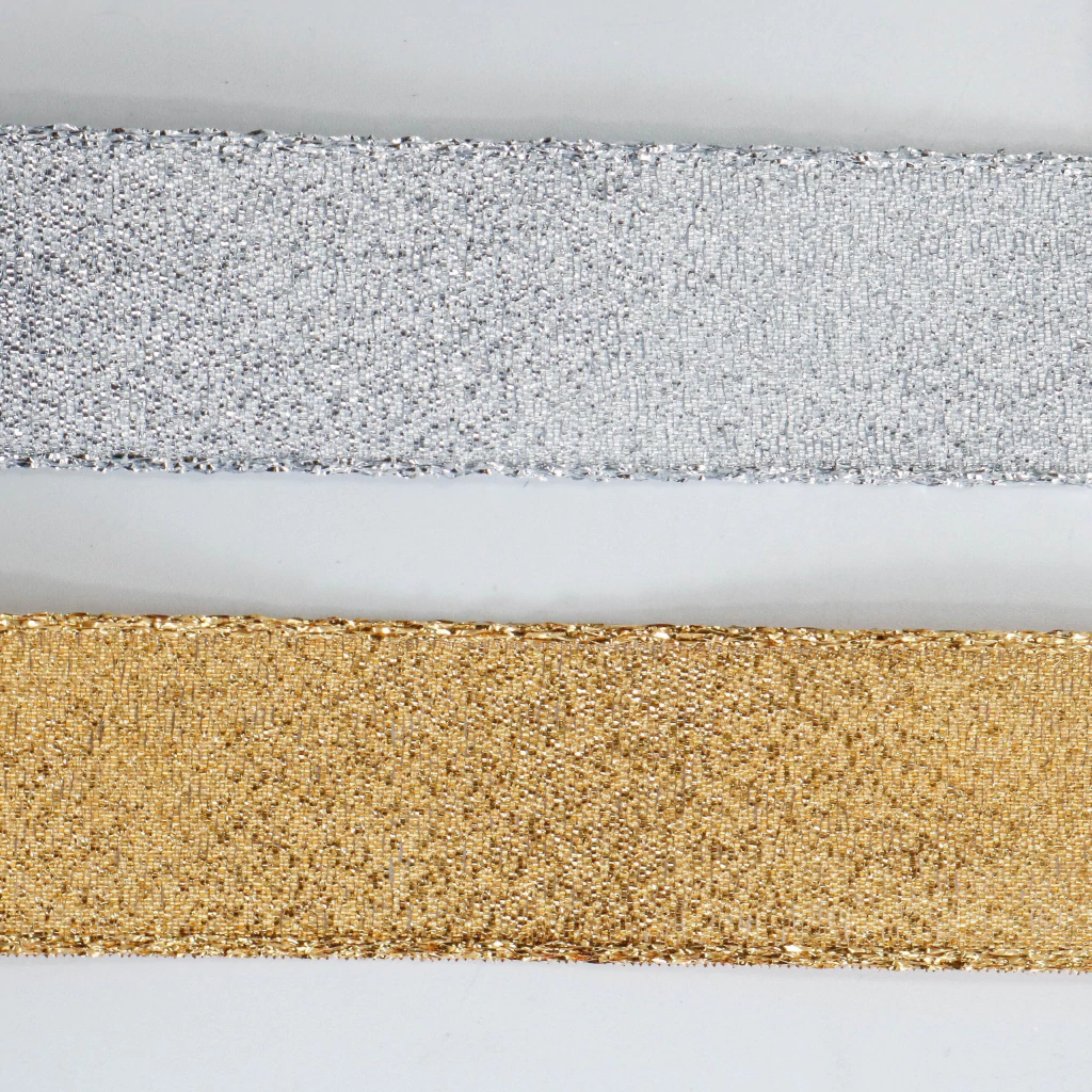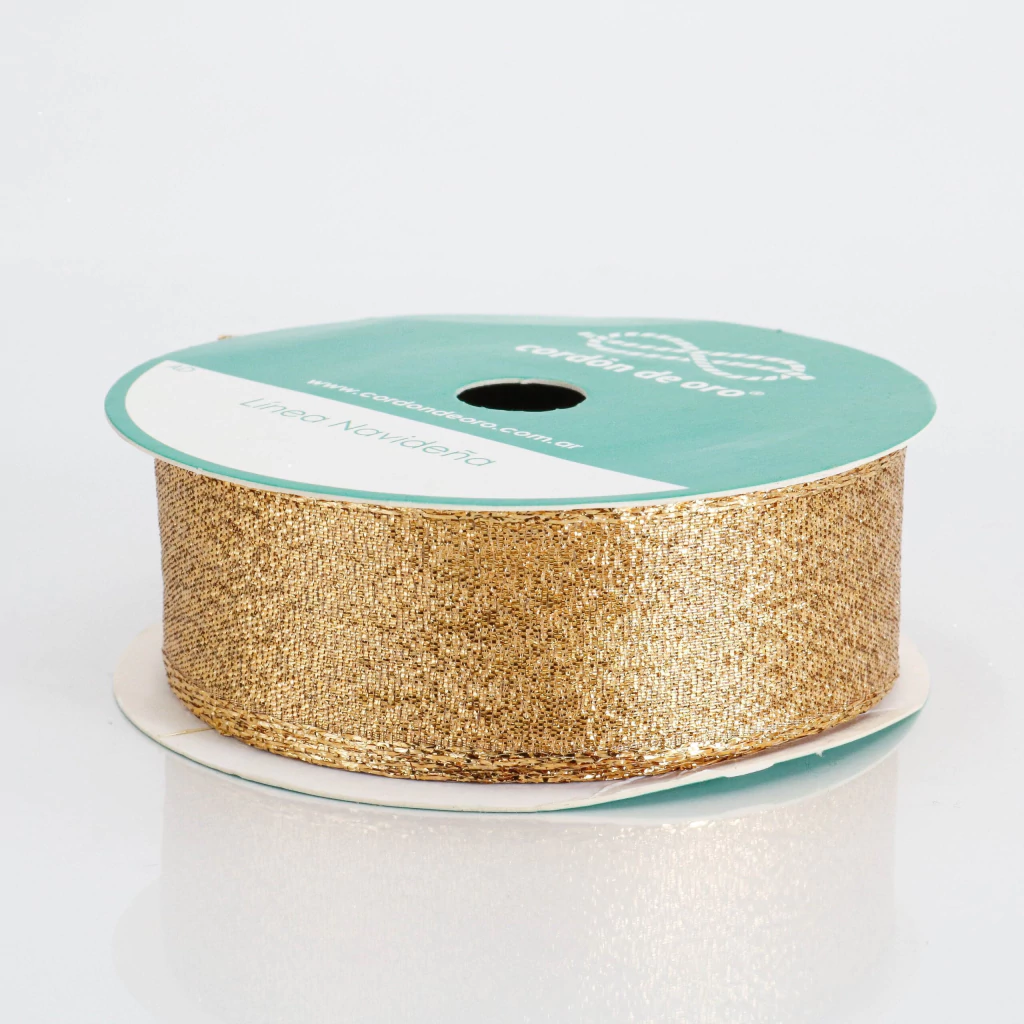 La cinta de lurex cordón de oro de 25 mm de ancho es ideal para moños grandes, decoración destacada y envoltorios llamativos. Su acabado dorado metálico aporta un brillo sofisticado que realza cualquier tipo de presentación, siendo perfecta para eventos, packaging premium y creaciones artesanales.