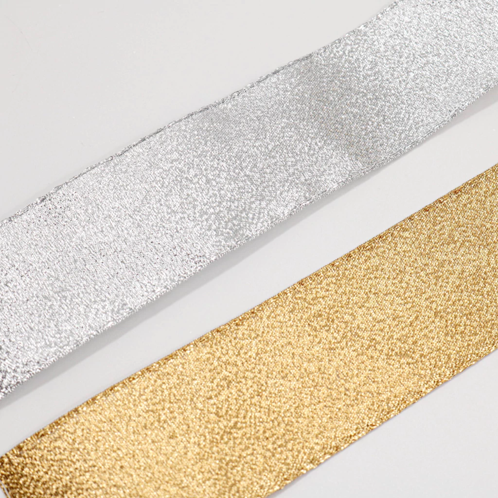 La cinta de lurex cordón de oro de 40 mm de ancho es perfecta para decoraciones de gran impacto, moños voluminosos y presentaciones destacadas. Su brillo dorado metálico realza cualquier proyecto, siendo ideal para eventos especiales, envoltorios elegantes, vidrieras y artesanías de lujo.