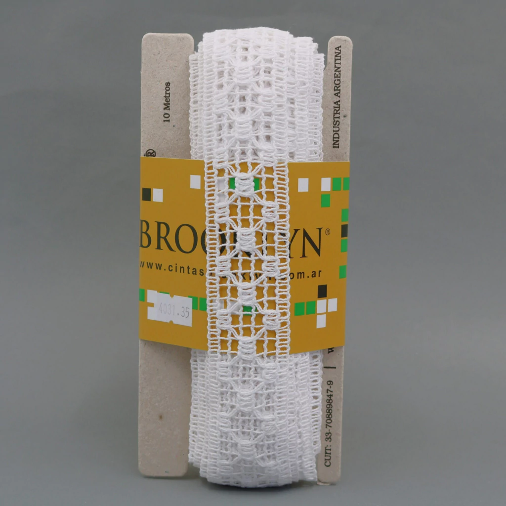 El entredos Línea X 4031 en color blanco, de 35 mm de ancho y 10 metros de largo, es ideal para terminaciones finas en costura, confección y decoración textil. Su tejido de algodón 100% aporta un acabado elegante, limpio y versátil a prendas, manteles, ropa de cama y accesorios.