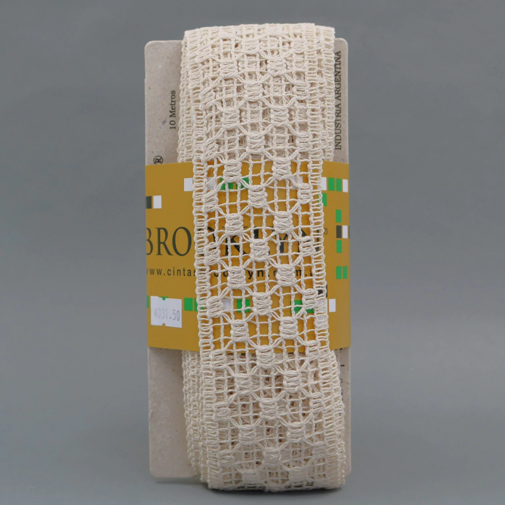 El entredos Línea X 4031 en color crudo, de 50 mm de ancho y 10 metros de largo, es perfecto para terminaciones anchas en costura, confección y decoración textil. Su tejido de algodón 100% brinda un acabado natural, elegante y versátil a prendas, manteles, ropa de cama y accesorios de gran tamaño.