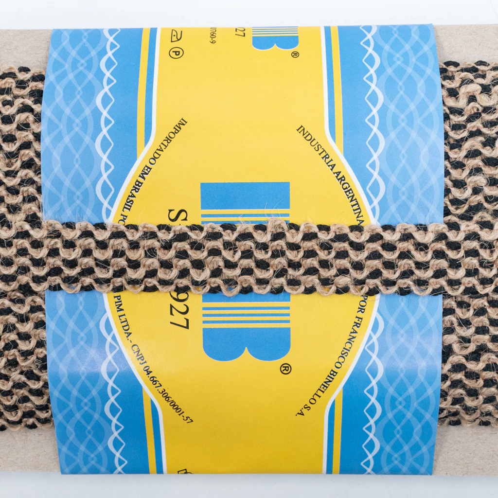 El galón negro y yute FB Zig Zag O71 es ideal para decorar prendas, accesorios y proyectos de manualidades con un estilo rústico y moderno. Su diseño en zig zag de 20 mm aporta textura y un acabado distintivo, perfecto para realzar bordes y detalles creativos.
