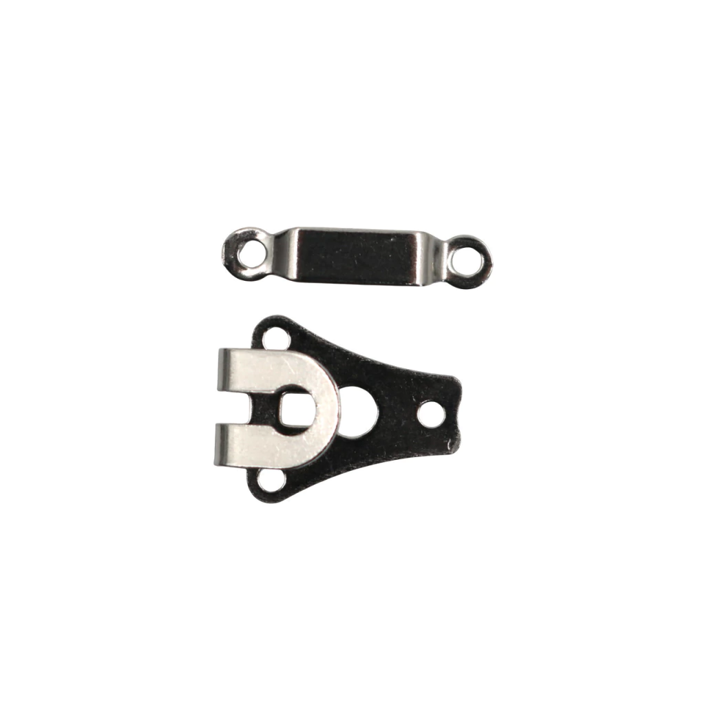 El gancho para pantalón de 2 partes está diseñado en acabado bronce, ideal para confección y arreglos de prendas. Su resistencia y practicidad lo convierten en una opción confiable para talleres de costura y confección.