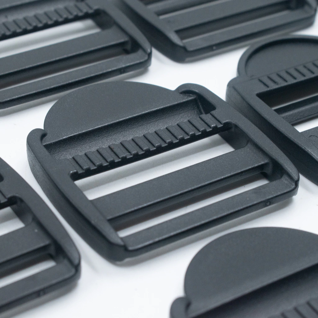 La hebilla plástica regulador escalera de 30 mm es un accesorio resistente y funcional, ideal para ajustar correas, cintas o tiras en mochilas, bolsos, cinturones y proyectos de marroquinería. Su diseño tipo escalera permite un ajuste preciso y seguro, garantizando durabilidad y practicidad en cada uso.