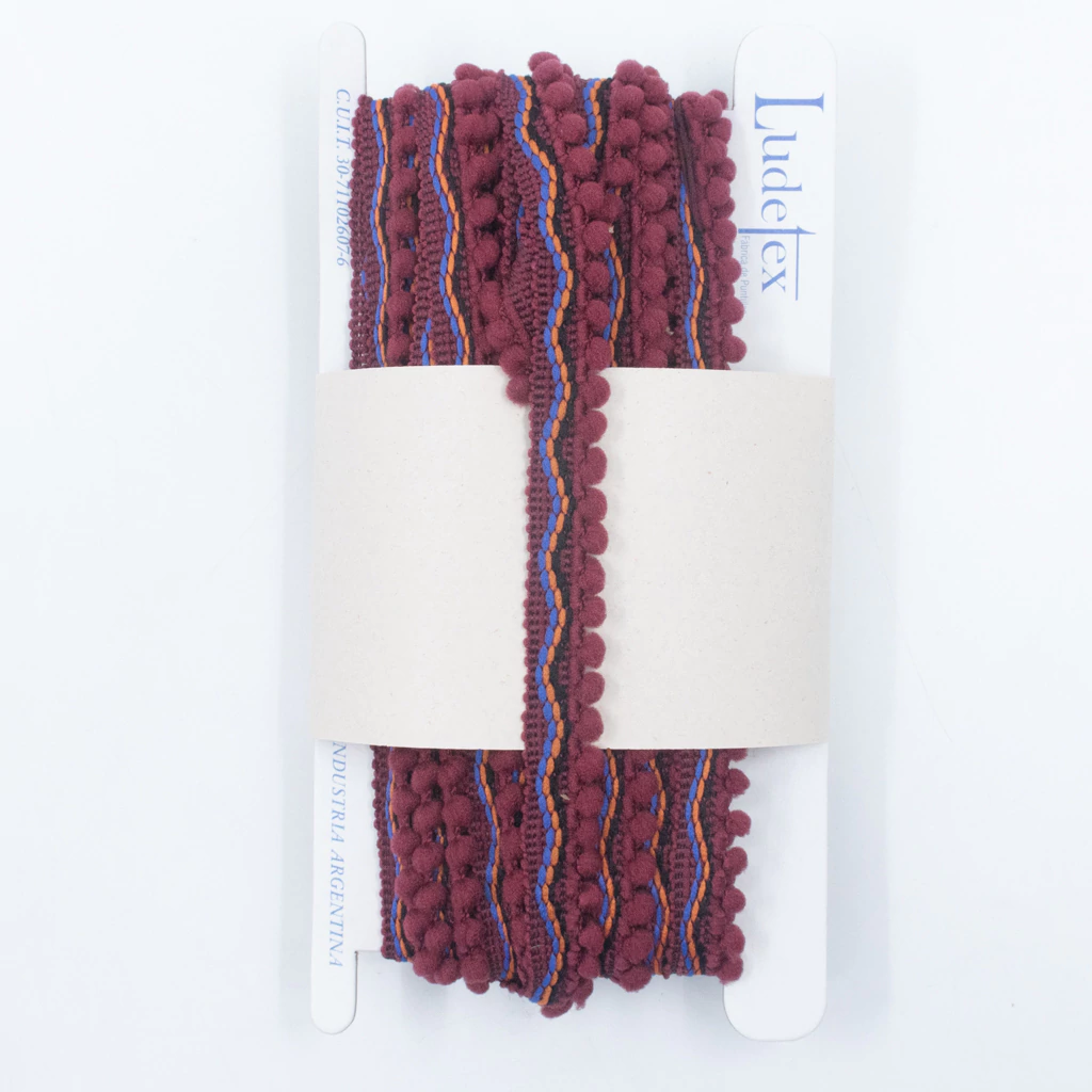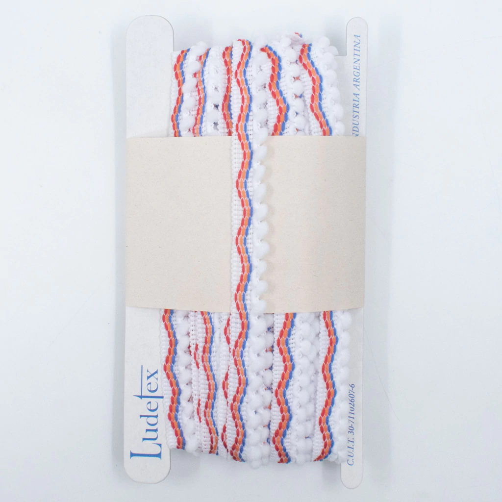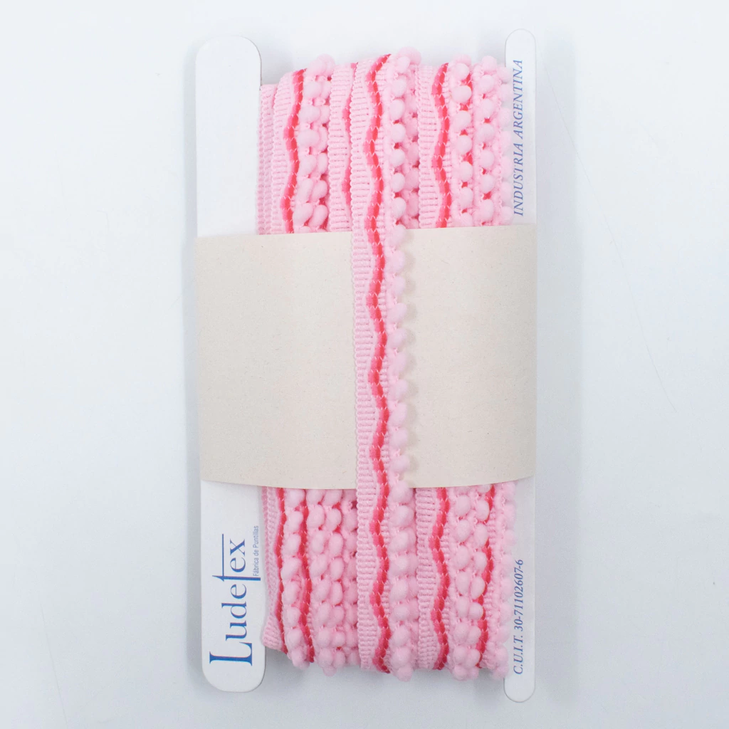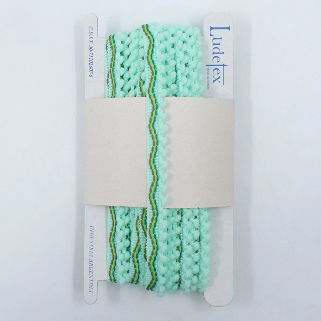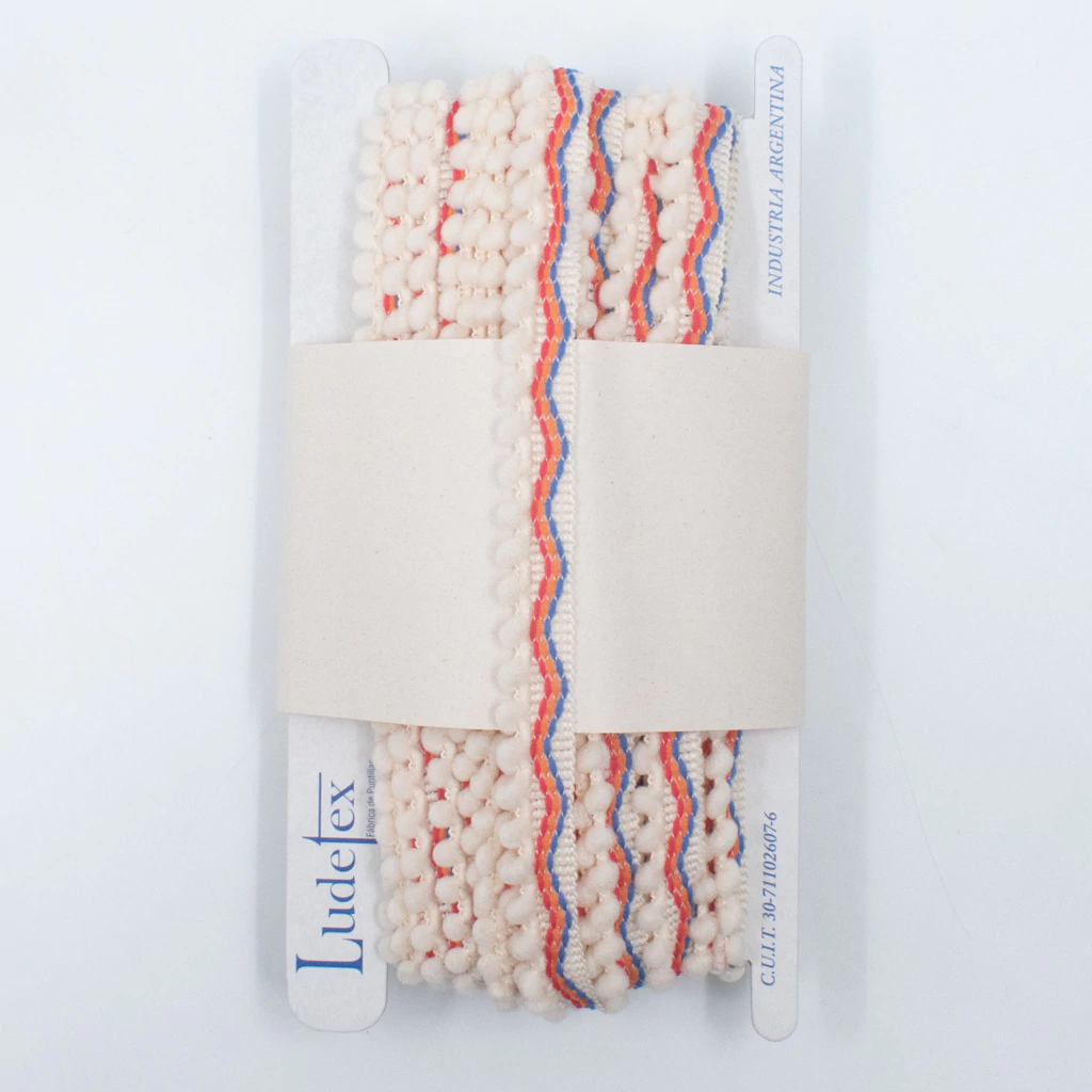El mini pompón con galón Ludetex artículo 3000 de 15 mm es un detalle decorativo ideal para manualidades, confección de prendas, decoración y artesanías. Su diseño con pequeños pompones aporta un toque divertido y elegante a bordes y terminaciones, mientras que el galón asegura firmeza y fácil costura.