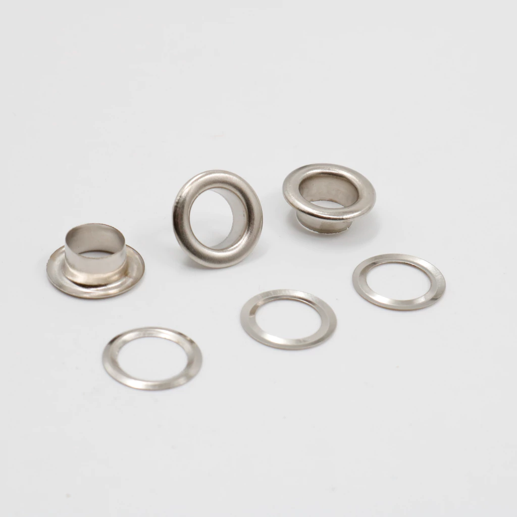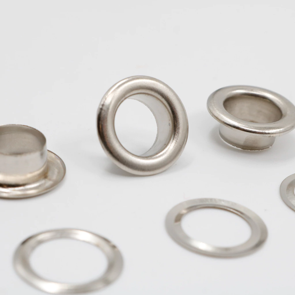 El ojalillo con arandela N°1300 está fabricado en hierro resistente, ideal para reforzar orificios en todo tipo de materiales textiles o sintéticos. Se coloca junto con su arandela, brindando un acabado firme, funcional y profesional en prendas, calzado, bolsos o artículos de lona.