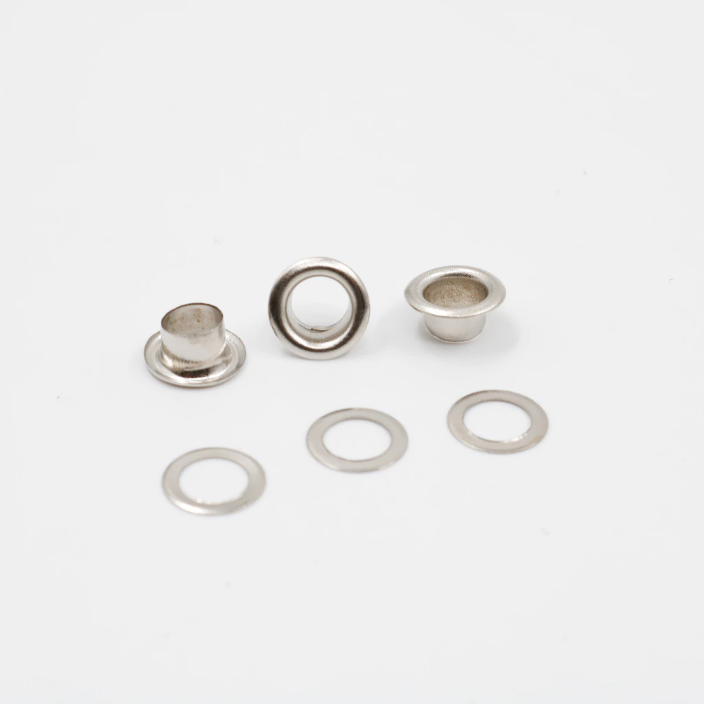 Ojalillo fabricado en bronce resistente, ideal para reforzar orificios en prendas, lonas, calzado y accesorios. Su colocación se realiza con matriz, garantizando una fijación firme y duradera con acabado profesional.