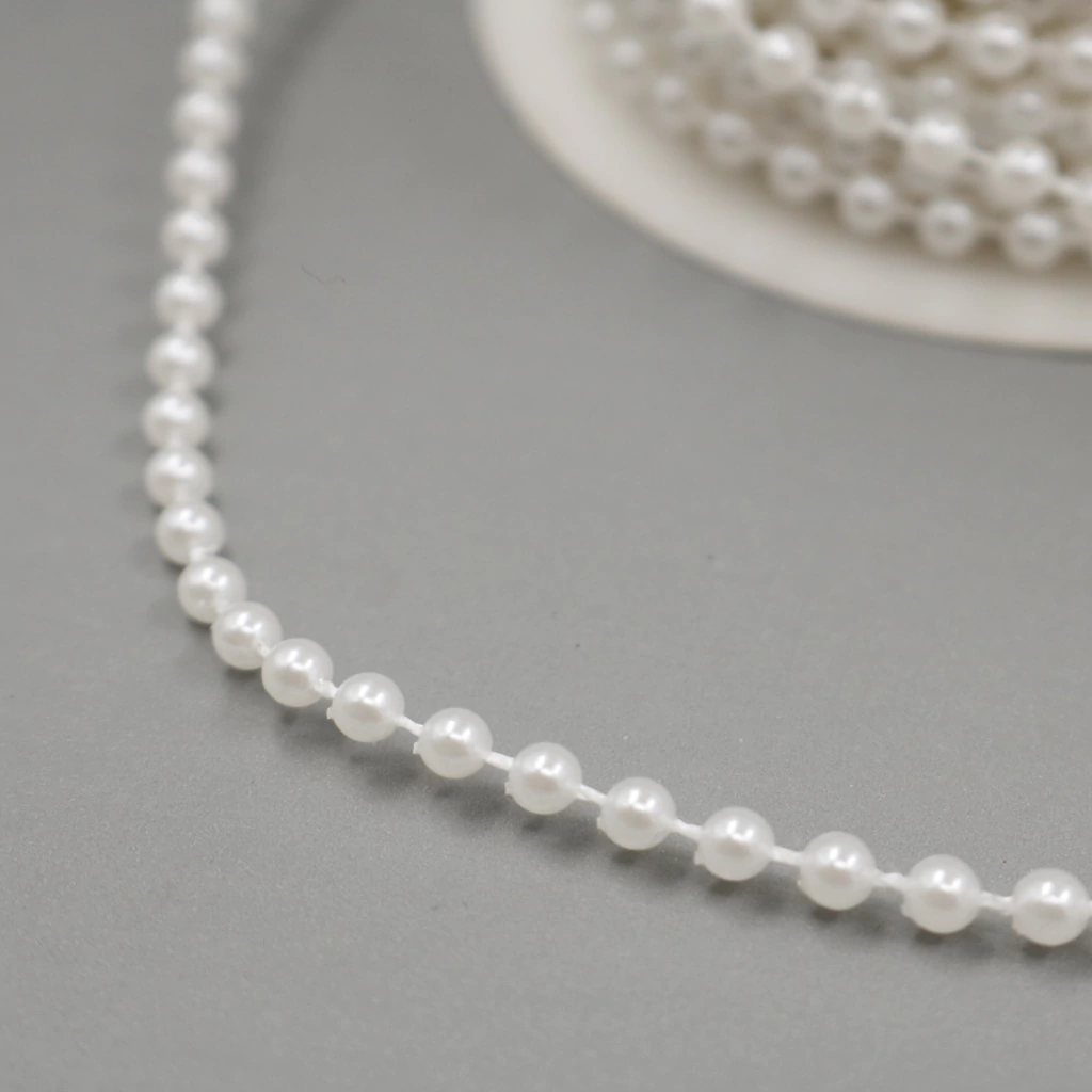 La perla en tira N°4 apta para teñido es ideal para proyectos textiles, bordado artesanal y bijouterie. Gracias a su terminación especial, permite ser teñida con anilinas o colorantes, adaptándose a tus necesidades de diseño. Viene en rollo de 30 metros continuos, lo que facilita su uso en producciones grandes.